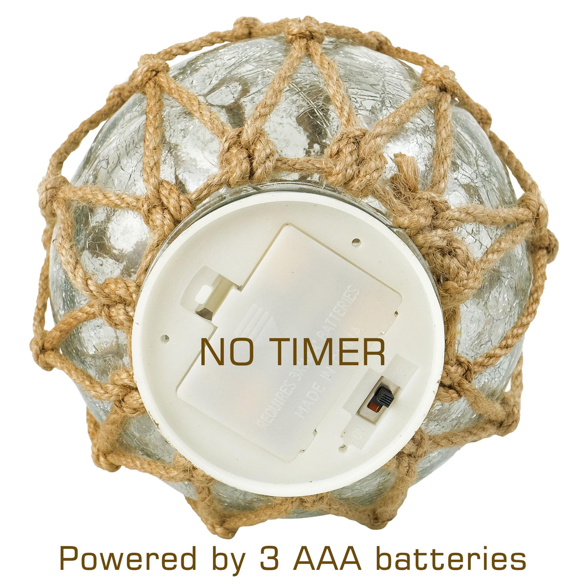 Q: What type of batteries does the SAILINGSTORY Glass Fishing Float Nautical Lamp require?A: The SAILINGSTORY Glass Fishing Float Nautical Lamp is powered by 3 AAA batteries, which are not included with the product.