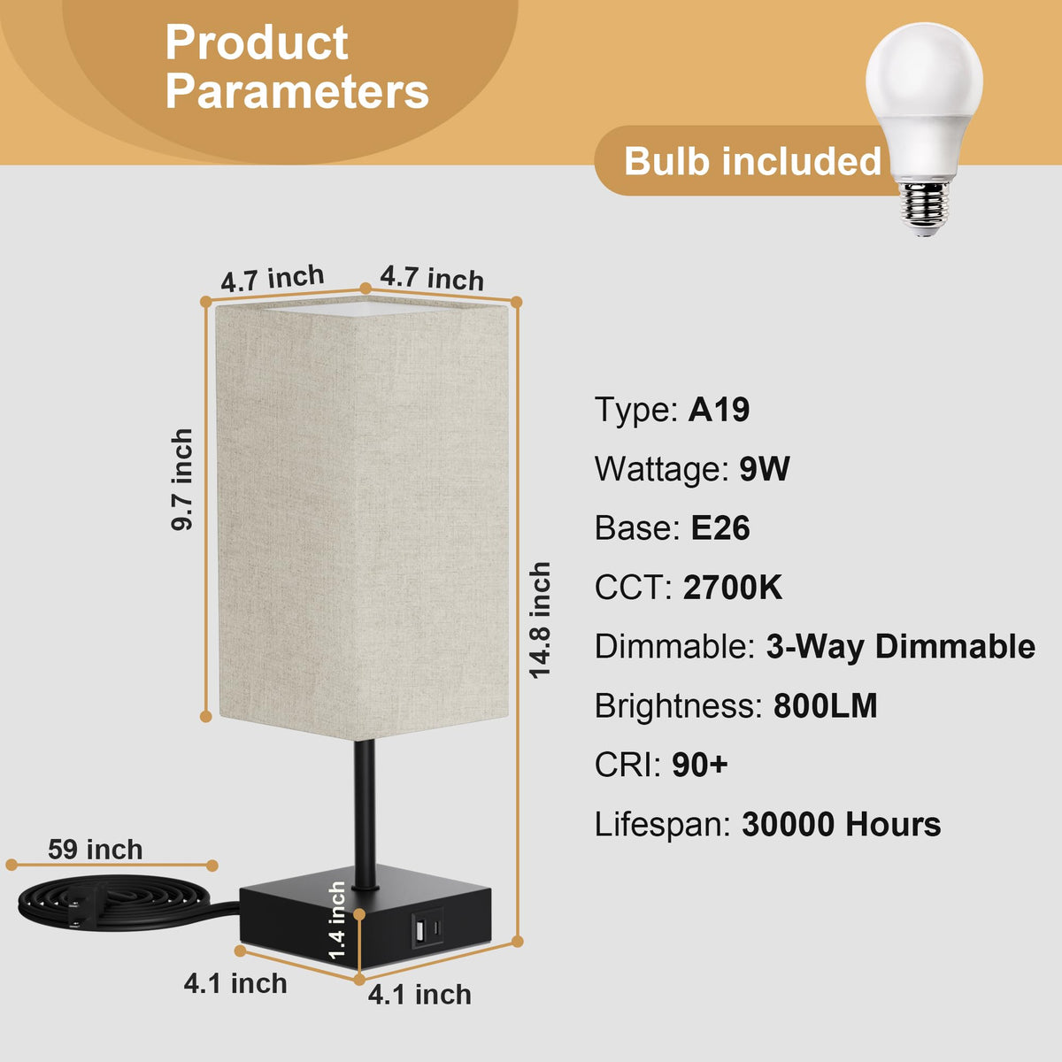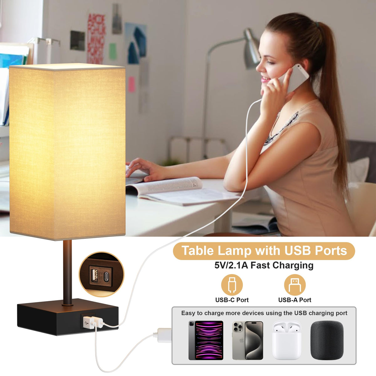 Story Of Sailstar Sailstar Committed To Develop The High Quality Table Lamp, Provide Quality Services And Excellent Product. Our Goals To Create More Convenient Usb Table Lamp And Provide Warm And Romantic Comfortable Home Environment. Modern Minimalist Style Touch Table Lamps Made Of Black Base And Flax Fabric Lampshade Provide A Natural And Minimalist Style, Create A Comfortable And Warm Home Atmosphere. Modern Table Lamp Fit People Who Yearning For Freedom And Have A Life Pursuit. 3-Levels Dimmable Touch Lamp. Touch Feature Works Anywhere On The Base Or Pole. Tap Anywhere At The Metal Lamp Base To Dim The Light Level To Meet Your Needs. Dual Usb Table Lamp & A19 Dimmable Led Bulbs Touch Lamp Support Charging 2 Devices At The Same Time. It Can Simultaneously Charge 2 Usb Powered Devices At 5V/2A, Or Power Appliances That Require 120Vac. Also, Bedside Lamps Includes One E26 2700K Led Bulb. Specifications: Product Type: Touch Table Lamp Voltage: 120 Volts Material: Plastic Shade Material: Flax Fabric Dimmable: Yes, 3-Level Brightness Usb Port: 2 Usb Ports(5V/2A) Accessories: A19 Led Bulb(Dimmable) Bulb Wattage: 9W Bulb Base: E26 Base Bulb Color: 2700K Warm White