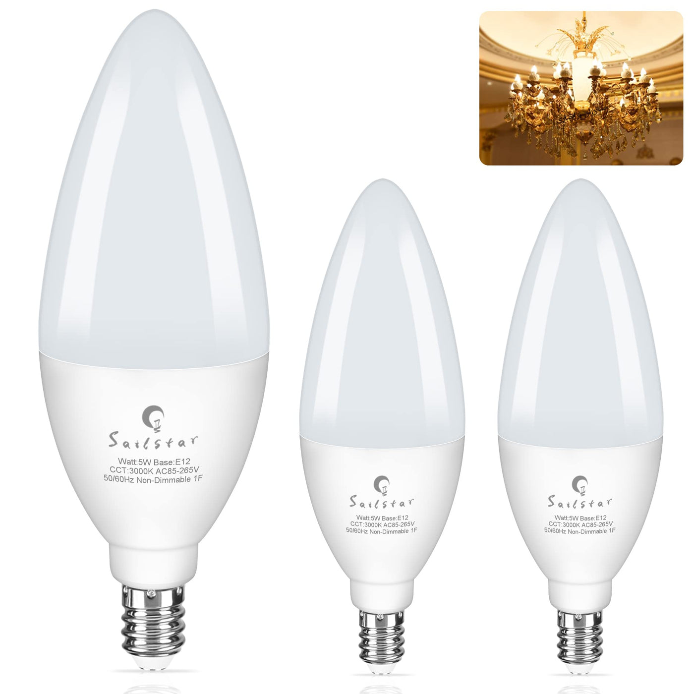 Sailstar E12 Candelabra Led Light Bulbs, 60 Watt Equivalent, 500Lm Ceiling Fan Light Bulbs Warm White 3000K, B11 Type B Led Bulb