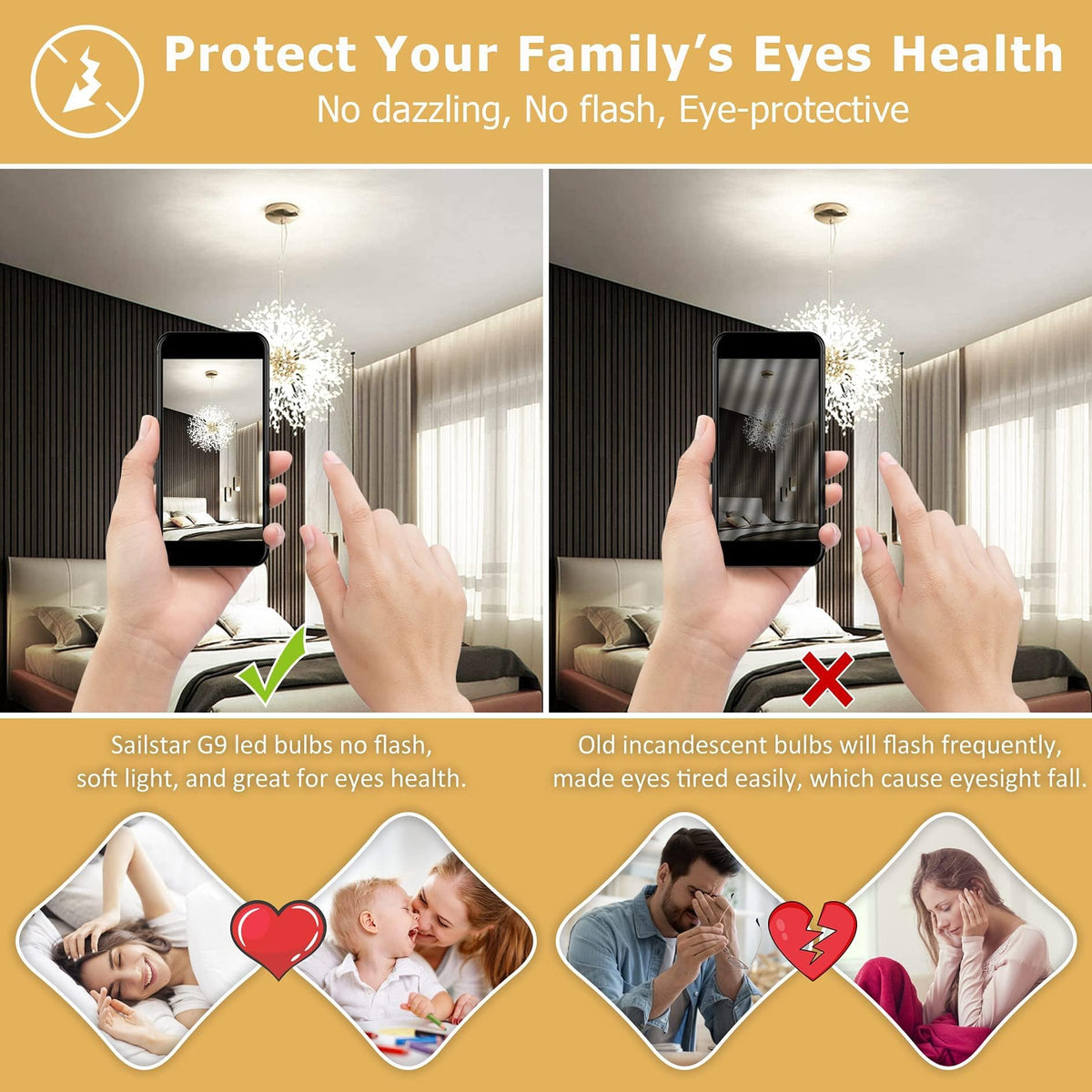 Q: What are the benefits of using Sailstar G9 LED bulbs compared to traditional halogen bulbs?A: Sailstar G9 LED bulbs offer significant advantages over traditional halogen bulbs, such as a longer lifespan of up to 30,000 hours and energy savings of up to 95%. They produce less heat, ensuring cooler operation during extended use, and are dimmable, allowing you to adjust brightness from 0%-100% for customizable lighting.