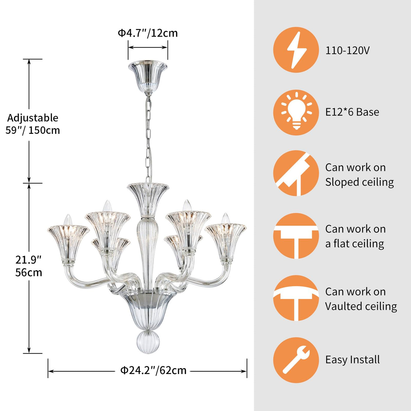Saint Mossi 6 Light Crystal Chandelier, Modern Dining Room Lighting Fixture, Clear Crystal Pendant Light For Bedroom Livingroom,