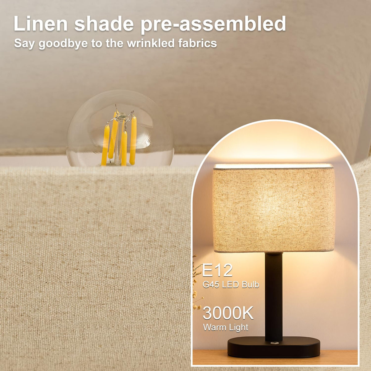 Tired of cords tying your lamp to one spot? Need bed/patio light but no outlet? The SAIWEYA 12.6 Cordless Touch Lamp fixes that-it works in home offices, bedrooms, living rooms, workspaces, and its a no-outlet lifesaver! Packed with a 5200mAh rechargeable battery: use the included USB-C cable, fully charge in 2.5 hours, then it lasts 24-48 hours. Curl up on the couch to read, finish work at your desk, or relax outside-grab it and go, no more stressing over outlets. Dimmings easy: tap to switch from soft nightlight (great for midnight , no harsh glow!) to bright task light (perfect for deadlines). It looks sharp too-matte black pole, slim base, fits any home decor. The linen shade softens the 3000K warm LED (no glare), and the heavy base stays put-safe for kids/pets. Best part? Ready in 1 minute (pre-assembled shade + bulb), works with your phone charger. Super useful, and a thoughtful gift!