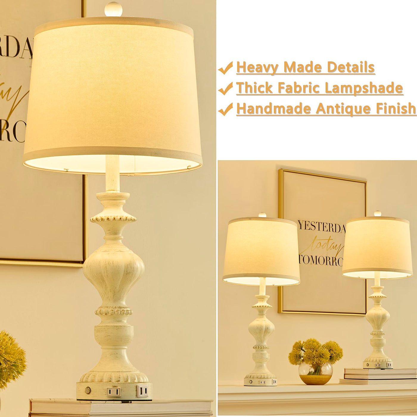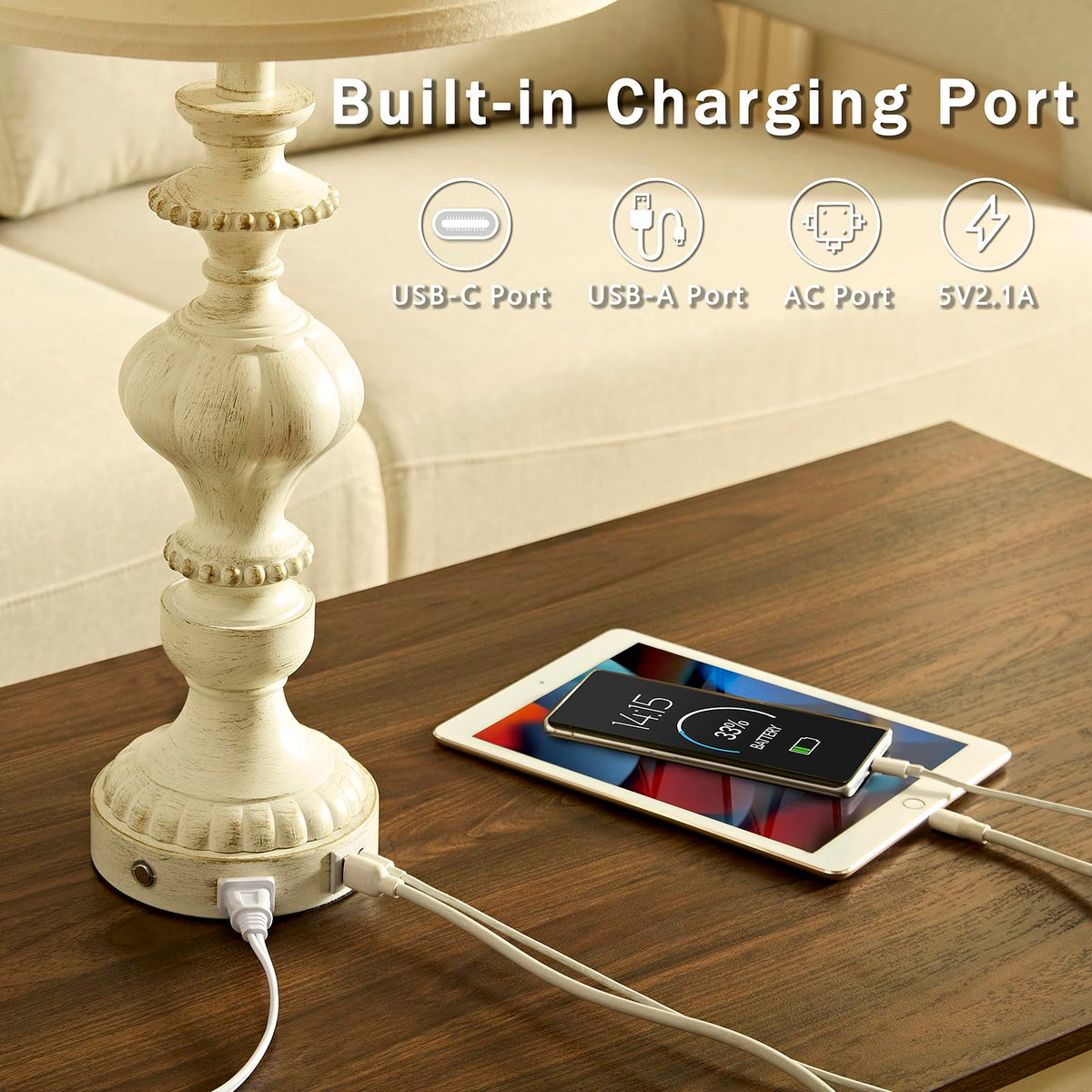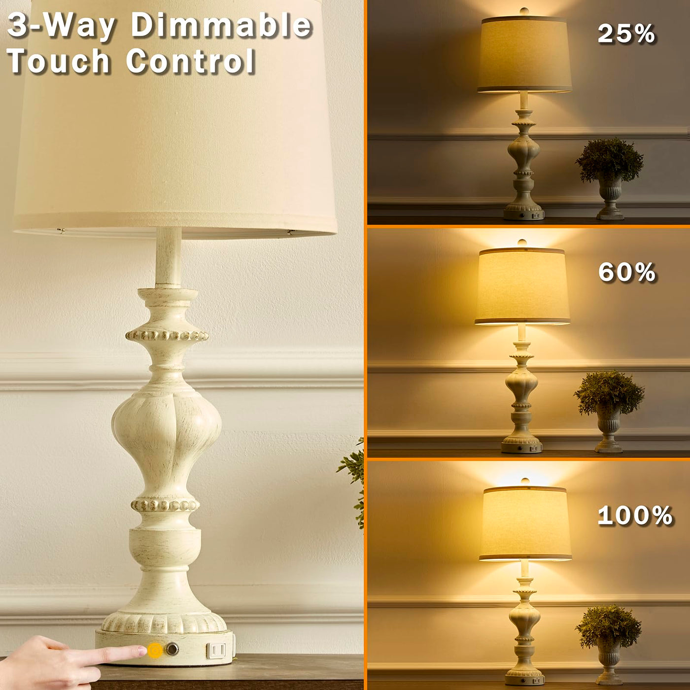 Saiweya 27.5'' Farmhouse Table Lamps Set Of 2 Bedside Lamp With Usb C+A Ports & Ac Outlet, 3 Way Dimmable Touch Lamps For Living