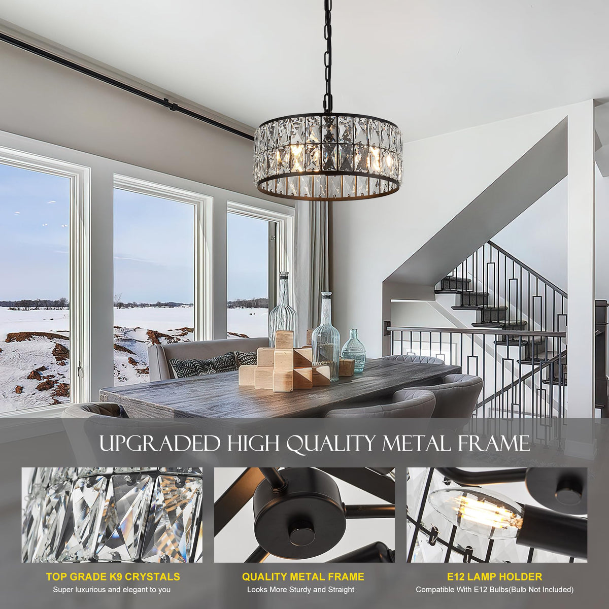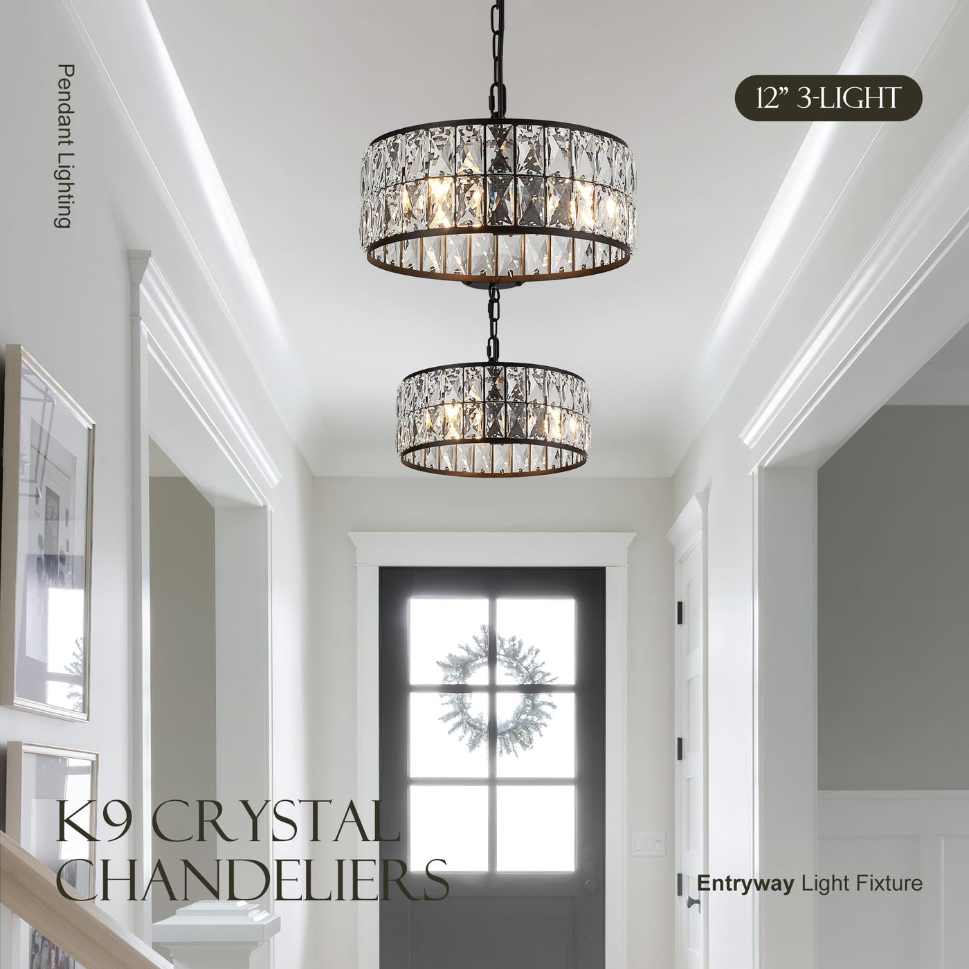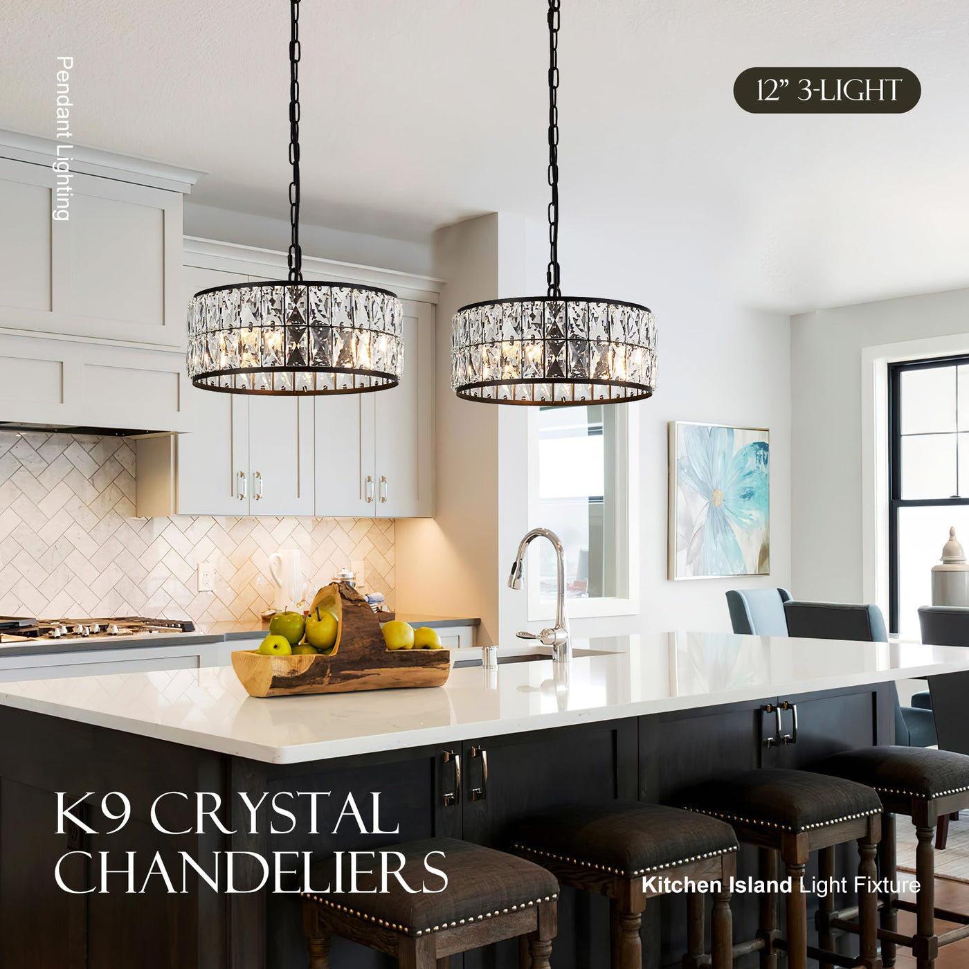 Salaiwei 12 3-Light Modern Crystal Chandeliers Black Dinning Room Light Fixture, Round Pendant Light Kitchen Island Chandelie