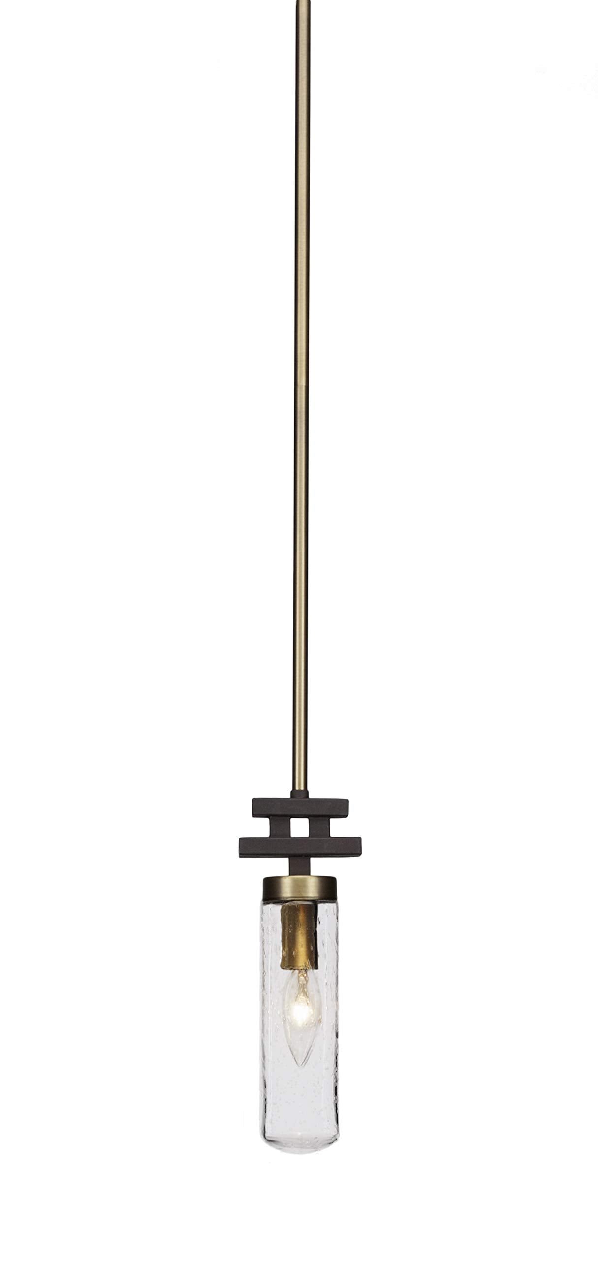 2501-ESBR-600 Salinda 1 Light Stem Mini Pendant In Espresso & Brass Finish With 2.5" Clear Bubble Glass. Rated for: Dry location. Light Bulb Data: 1 Candelabra 60 watt. Bulb included: No.