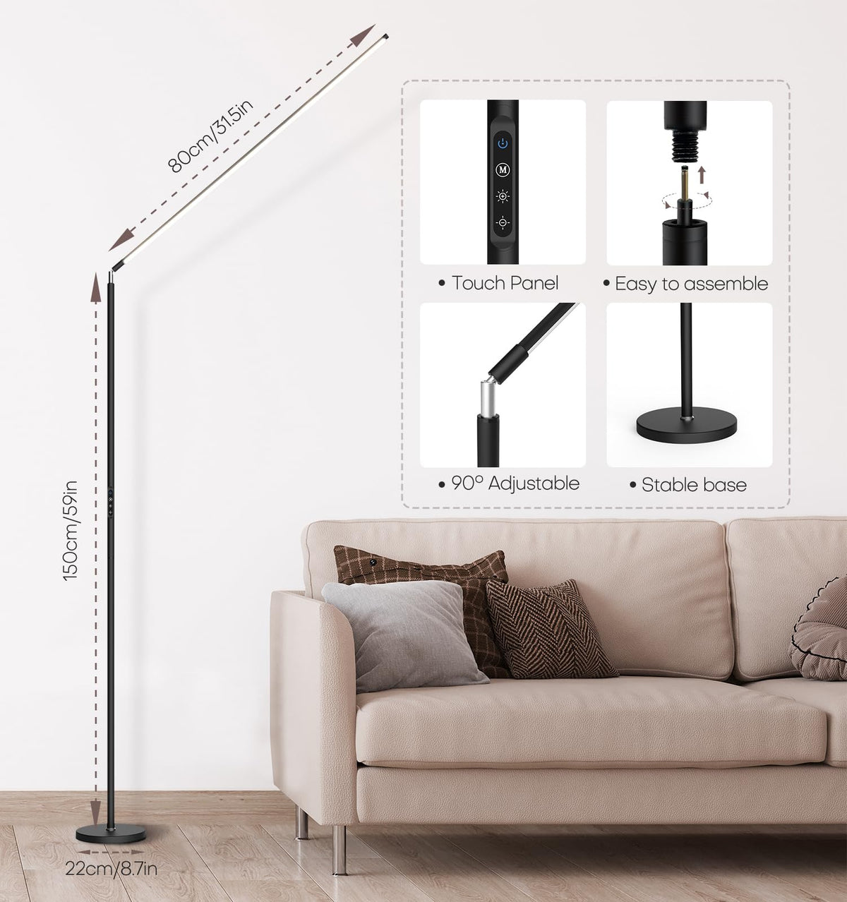 Samphon Led Floor Lamp, Bright Eye-Care Standing Lamp, Home Decor With Touch Control Dimmable Reading Light For Living Room, Bed