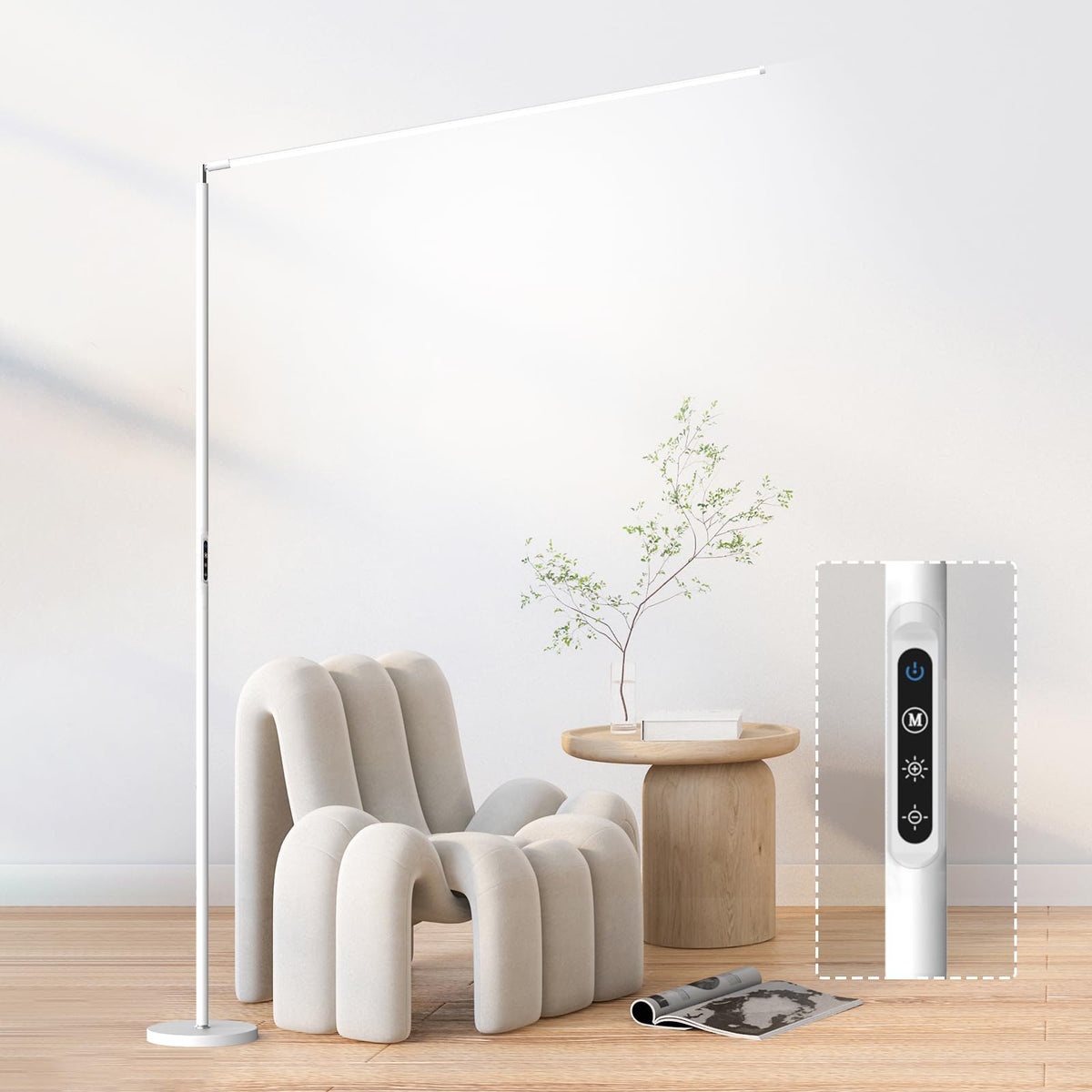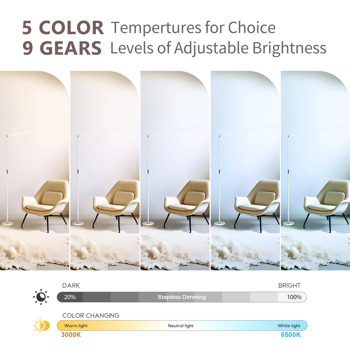 Samphon Led Reading Floor Lamp, White Standing Lamp With Touch Control Dimmable 5 Color Temperature, Eye-Caring Bright Floor Rea
