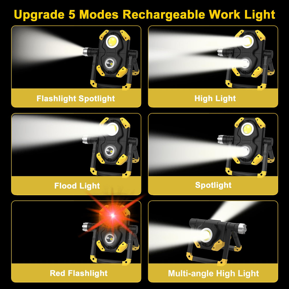Q: Is this work light suitable for camping and emergency situations?A: Absolutely! The portable and rechargeable design, combined with its bright output and multiple lighting modes, makes it an excellent choice for camping, emergencies, and other outdoor activities.