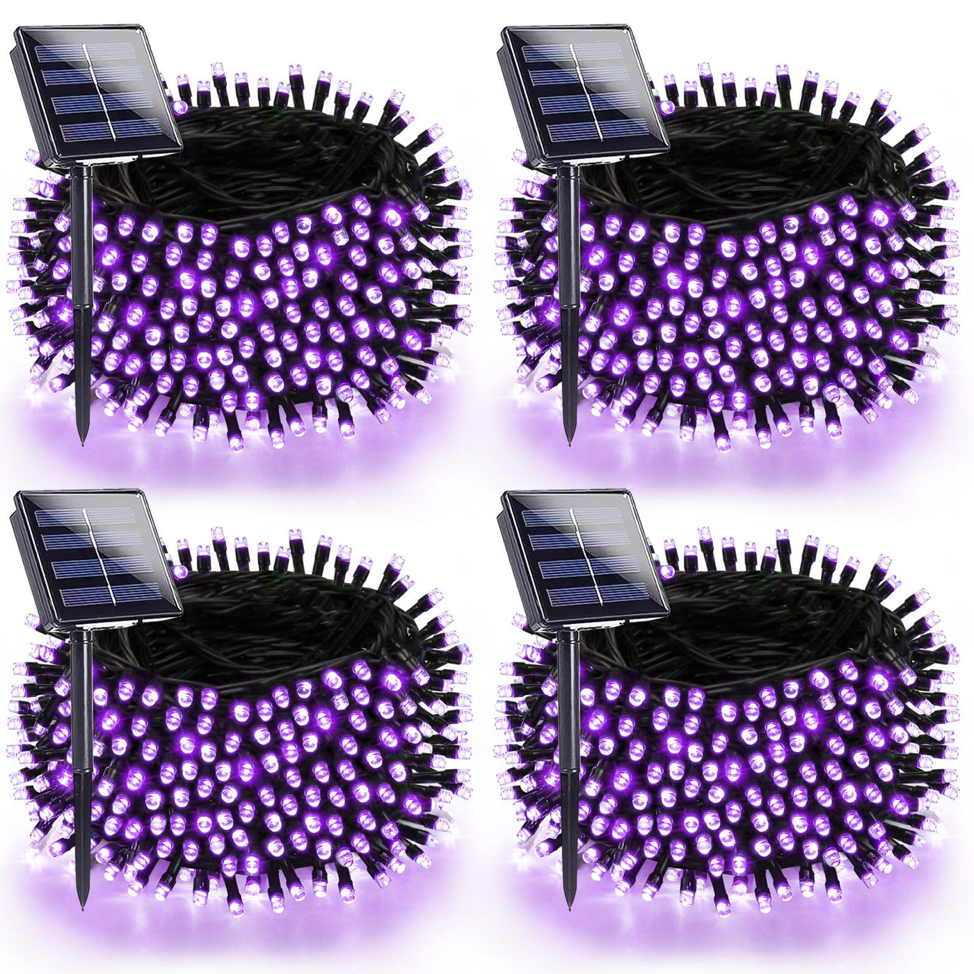 SANJICHA 4 Pack Solar String Lights, 320 LED, 180FT, Waterproof, Purple, 8 Modes, for Halloween Decorations