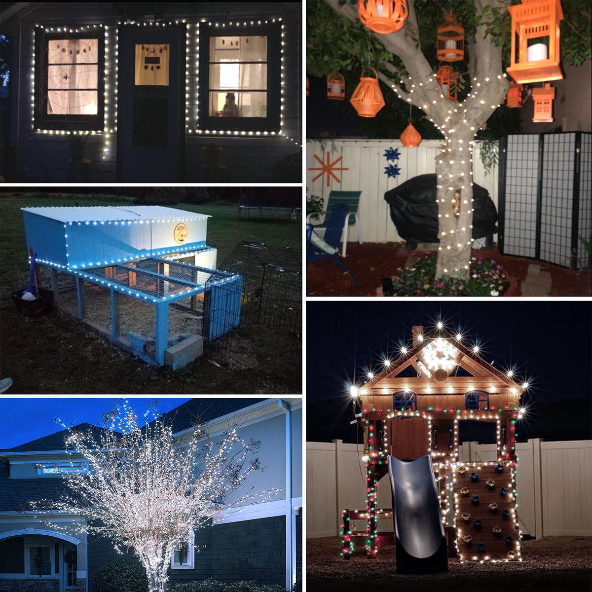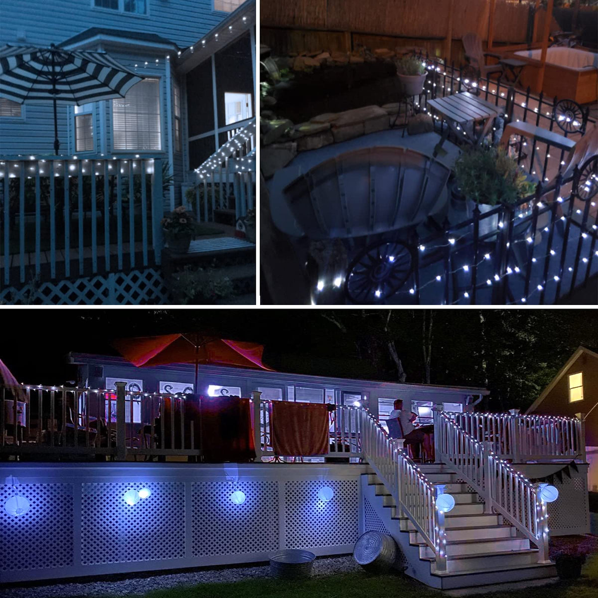 Sanjicha White 2-Pack Each 72Ft 200 Led Solar String Lights, Waterproof Copper Wire 8 Lighting Modes Solar Christmas Lights For