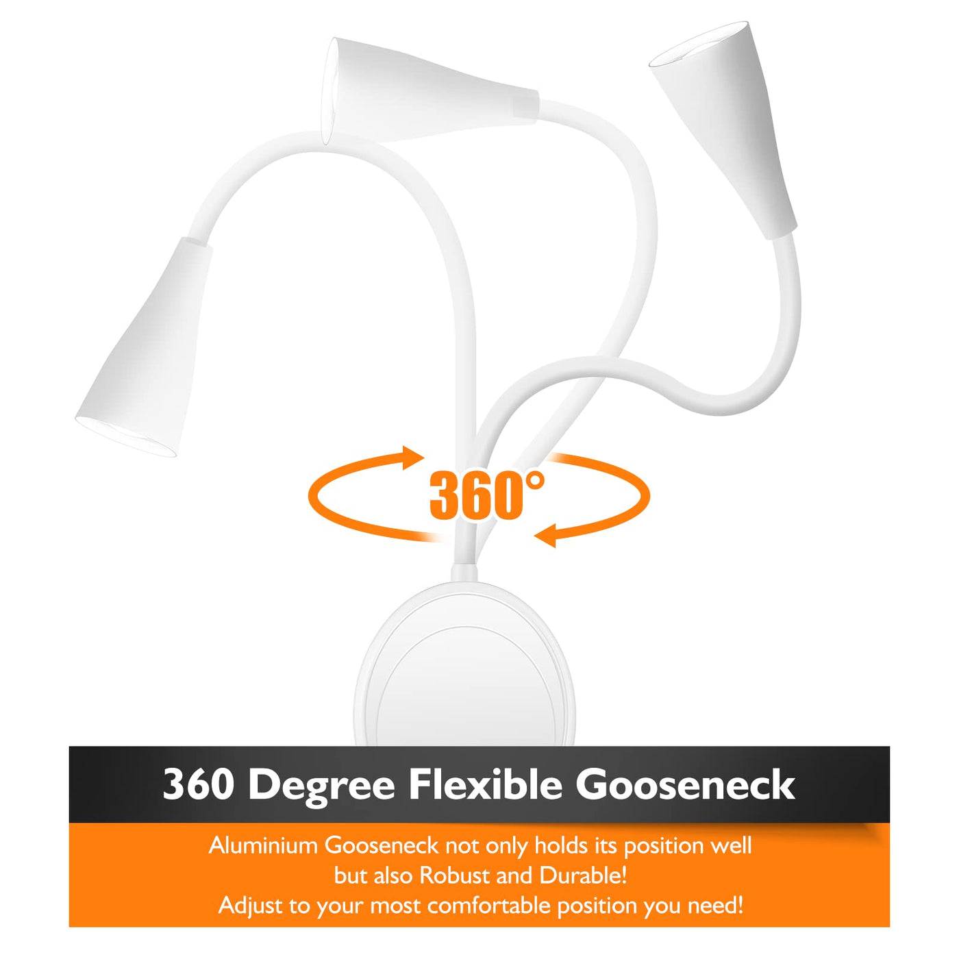 SANKEDOU Wall Reading Light, Book Light for Reading in Bed, Touch Control USB Output Modern Reading Lamp,5 Dimmable LED Flexible Gooseneck Bed Lights, Easy to Install! ?Focused Directly ? Focuses directly on your book while keeping the rest of the room dark, so as to give you the best reading experience without disturbing each other. 10 LEDs make the light bright enough. A narrow beam with a 60-degree lighting angle focused on the book and enjoys reading time without disturbing people next to you. ?5 Dimming & Touch Control ?Upgrade With 5 brightness levels for dimming, which is sufficient for twilight and late night using.The newest technology SMD2835 LEDs are integrated in spot lamphead, the flexible and sensitive touch function can adjust the lighting, Accent spot lighting can only illuminate necessary area without disturbing others. ?Two timers & Flexible Gooseneck?Two timers function provides a true power saving and convenience & Make reading more regular. Gooseneck with 360 rotation at the head. It can be adjusted and directed to shine where you want it and without damage anything. ?Night Light & USB Output ?A Night Light Function makes you a more choice. 5V 1A Standard USB output provides you most convenient charging under the premise of ensuring your safety. Suitable for mobile phones, pads, and kindle charging. Not only increae the power plug in your room, but also bring more convenience to your life. ?Easy To Install & Eye Caring?Simple in appearance and easy to install. You can fix or glue the support plate on the surface. Professional comfort wall mount lamp anti-dizziness & no flicking with eye protection function. Provide you and your kids with the best lighting experience. 3000K-6000K Upgrade Version, A great gift for book lovers--& Personal Bed Reading Lights!