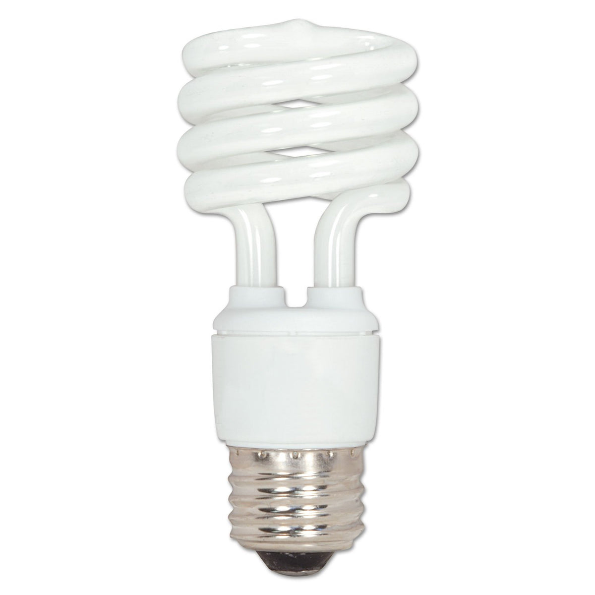 This self-ballasted, fluorescent spiral bulb uses a mini T2 spiral bulb that's designed to fit in most lamps. Using 13 watts, this spiral bulb produces a crisp light at 4,100 Kelvin. Nondimmable spiral bulb features a medium base and produces 880 lumens for 12,000 hours. 120-volt spiral bulb is perfect for lighting areas where harsh, white light is not desired. Energy Star qualified and RoHS compliant.