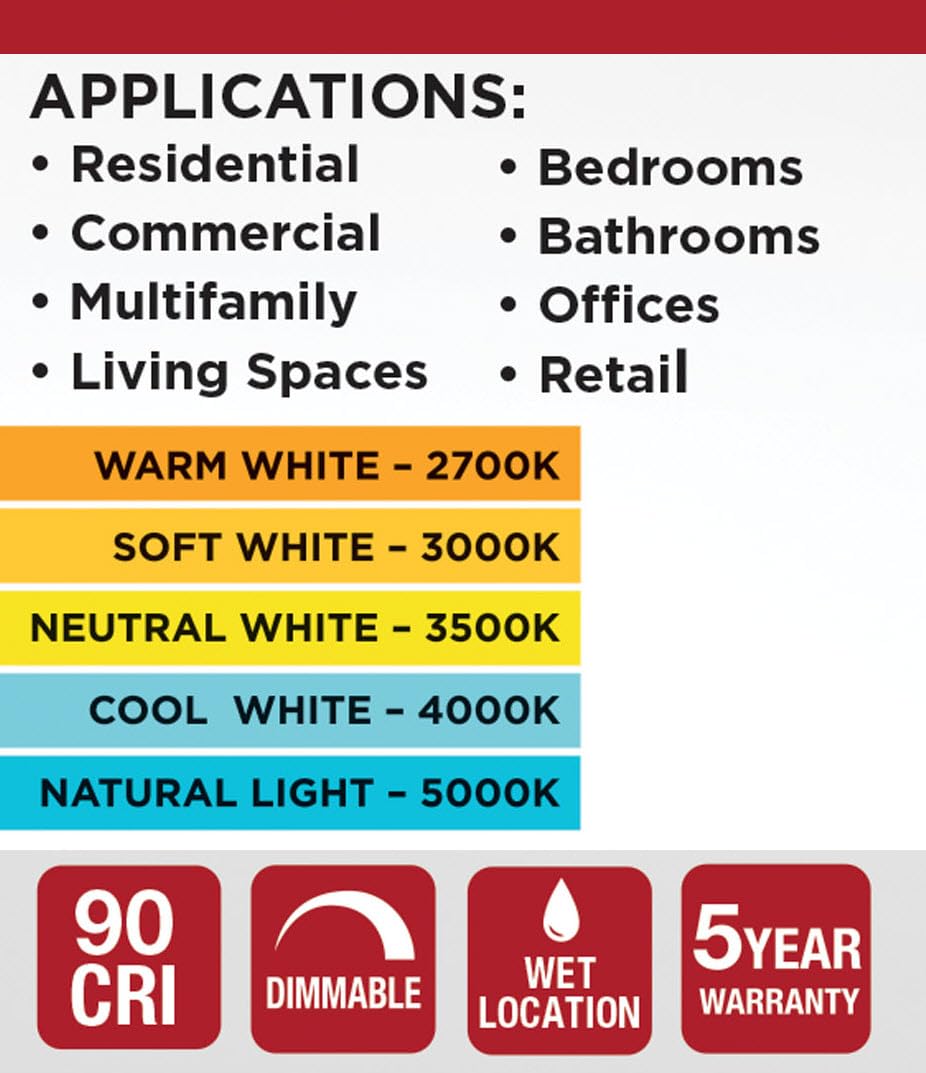 Our LED Retrofit Downlights are the easy way to convert traditional recessed lighting to LED. These products are designed to fit 4'' and 5/6'' recessed cans and include an E26 socket base adapter for effortless installation. The stepped baffle design reduces glare and the fixture produces exceptional color rendering to enhance any environment from home to office. Complement any decor with white trims in round or square, or for more contrast black, bronze and brushed nickel round trims are available.