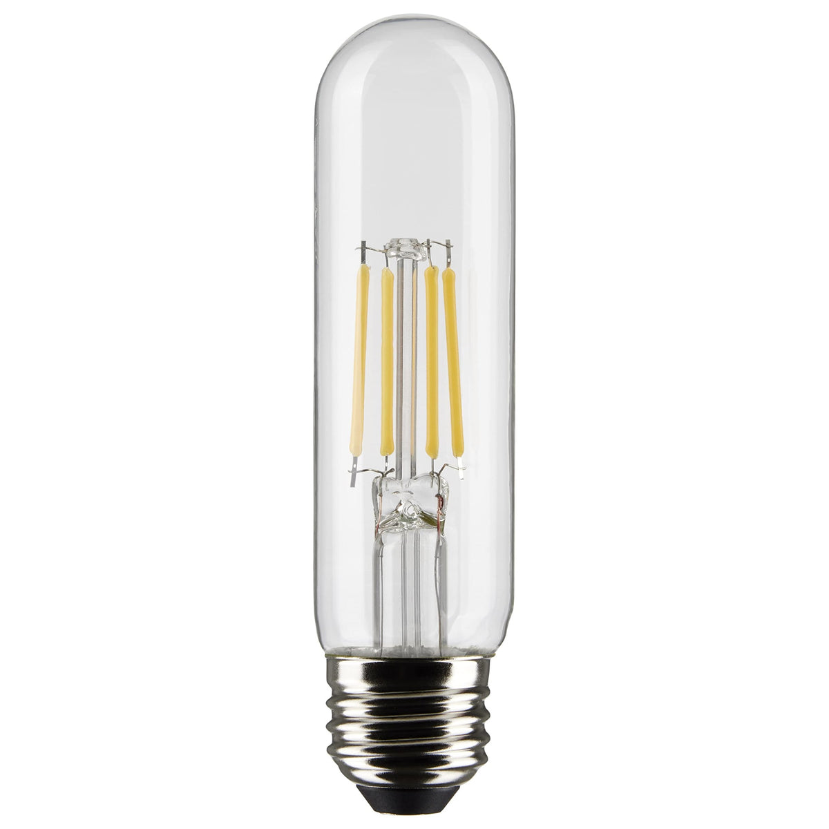 Q: What are the specifications of the Satco S21344 light bulb?A: The Satco S21344 features a medium base T10 lamp shape, with dimensions of 5.00 inches in length and 1.25 inches in width. It operates at 120 volts and has a brightness of 450 lumens.