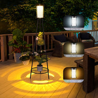 Double Plant Stand : Outdoor Lamps For Patio Has One Big And One Small Plant Shelf, So That Your Plants Have More And Better Display,With Three Adjustable Lighting Modes, You Can Switch Between 6500K White Day Light, 4000K Bright Yellow, And 3000K Warm Light To Get The Lighting Mood You Want.Easy To Install: Outdoor Decor For Patio Is Easy And Quick To Install, Use Metal Baking Paint Material As The Bracket And Plant Stand, The Whole Body Of The Lamp Is Made Of Abs Material And Pp Material.All The Installation Parts Have Instructions, You Just Need To Follow The Instructions Step By Step Assembly, A Few Minutes To Complete The Assembly Easily,Efficient And Energy-Saving : Solar Floor Lamp Auto Charging During The Day And Auto On At Night,22% Photoelectric Conversion Efficiency, 6 Hours Charging In Direct Sunlight During The Day, And 8~12 Hours Continuous Working At Night,Perfect For Accenting Your Patio, Balcony And Garden,Patio Decor Make Your Home More Cosy And Romantic,Diversified Charging Methods: Solar Patio Lights With Upgraded Monocrystalline Silicon Solar Panels, 1200Mah Battery Capacity, Separate High Quality Dc Charging Port,Both To Meet The Solar Charging, Dc Charging, Great For Decorating Indoor Balconies, Outdoor Patios And Porches,Waterproof And Durable:Patio Lights Outdoor Waterproof Meets Ip65 Waterproof Standard Which Is Lightning-Proof, Rain-Proof, Oxidation-Proof And Anti-Exposure.Its Adaptable Working Temperature Is -4?~140?,Durable Construction Make It Suitable For All Weather Conditions,Ensuring That It Can Withstand Rain, Snow, And Heat Without Compromising Its Performance.