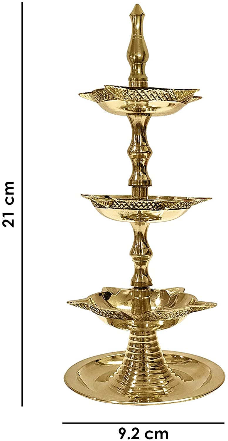 SATVIK 2Pc Standing Brass Kerala Samai Diwali Deepak for Puja Traditional Panchmahal Pooja Deepam Diya Oil Lamp Kutthu Vilakku D