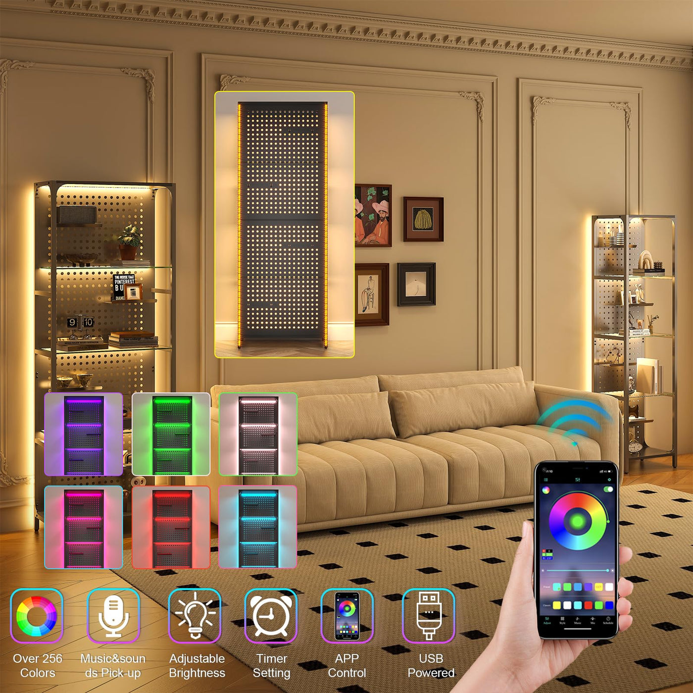 Black Glass Shelf With Led Rgb Light App Control Steel Frame Pegboard Back 4 Tiers Display Shelves Collectibles Office Shelf Shelf Lamp Floor Lamp With Shelves Rock Display Case Glass Display Cabinet Shot Glass Display Case Figure Display Case Curio Cabinet Display Cabinet With Glass Doors Corner Light Corner Floor Lamp Govee Floor Lamp
