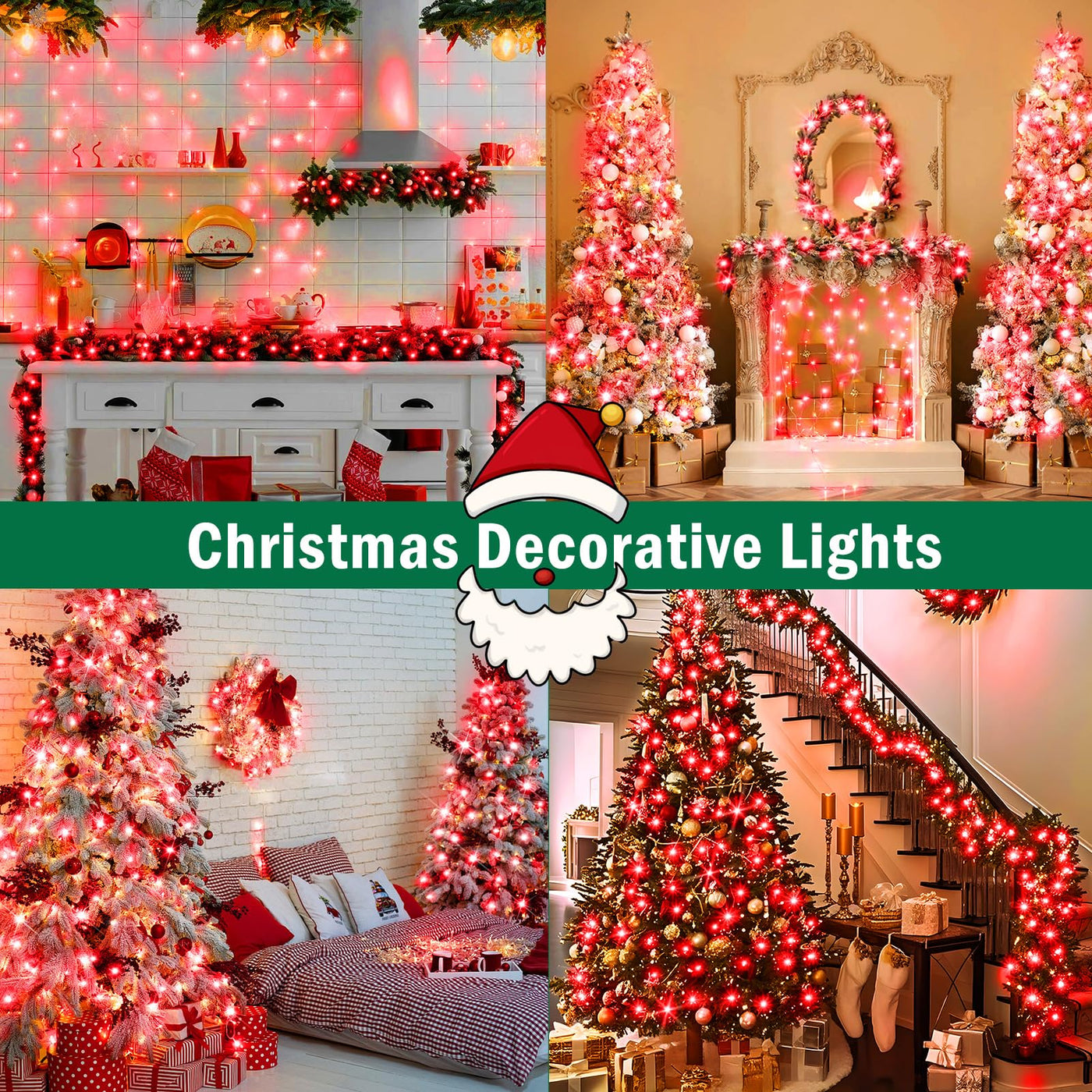 Sauirs 197Ft 500 Led Christmas Lights Outdoor String Lights With 8 Modes Timer Waterproof Fairy Light Plug In For Outside Indoor Party Xmas Palm Tree Yard Wedding Decorations(Red)