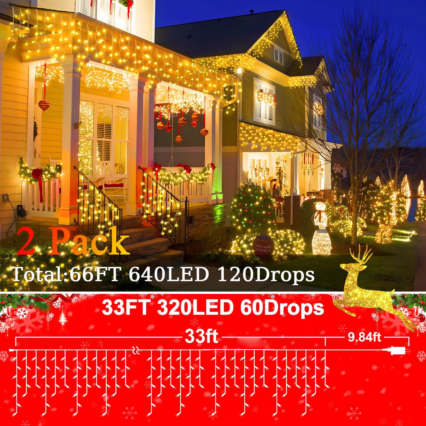Bright Led Christmas Lights:2Pack 320 Led Christmas Lights Length Is 66Ft With 120 Drops,10Ft Extension Cord.Made Of Transparent Lines And Upgraded Lamp Beads,The Transparent Lines Are Easier To Blend Into The Night,Enhance The Aesthetics Of The Decoration,You Can Hang Them On Roof,Hedge,Fence,Prom,Patio,Eave,Handrail Etc,Creating Romantic Atmosphere For Wedding,Party,ValentineS Day,Christmas,New Year
