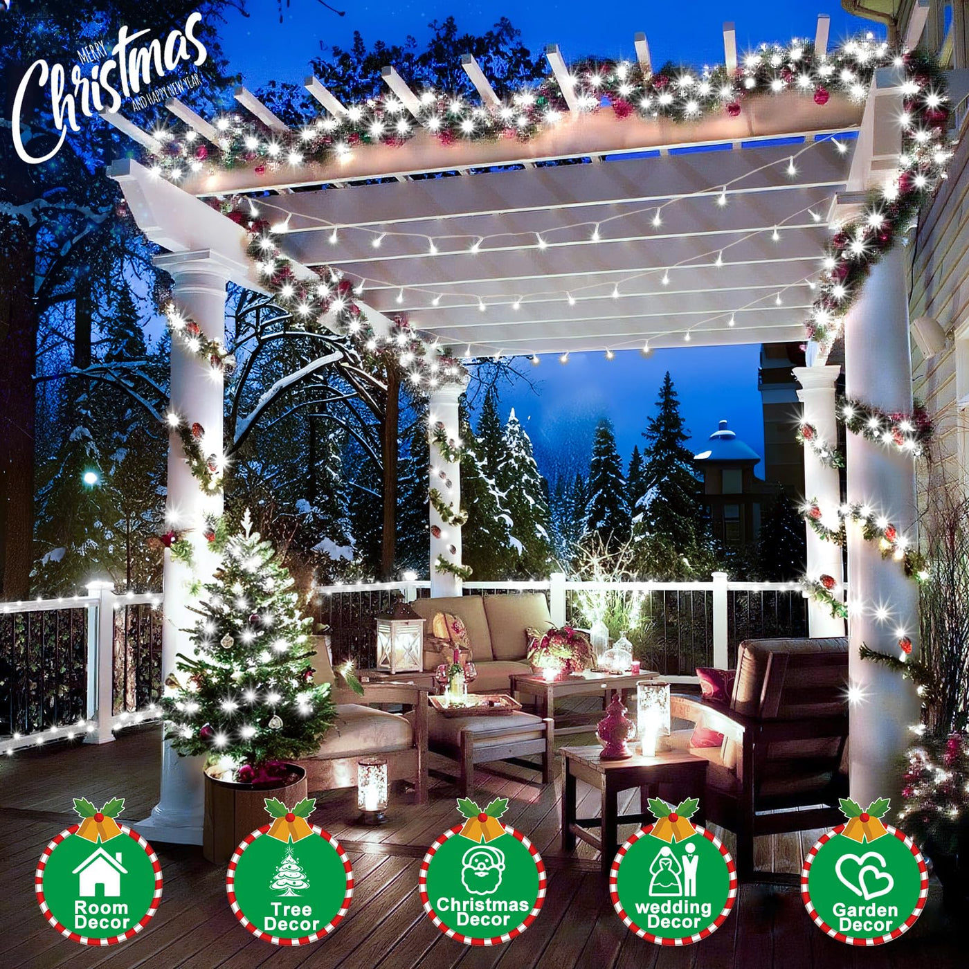Sauirs 403Ft 1000 Led Christmas Lights Outdoor String Lights With 8 Modes Timer Waterproof Fairy Light Plug In For Outside Indoor Party Xmas Palm Tree Yard Wedding Decorations(Cool White)
