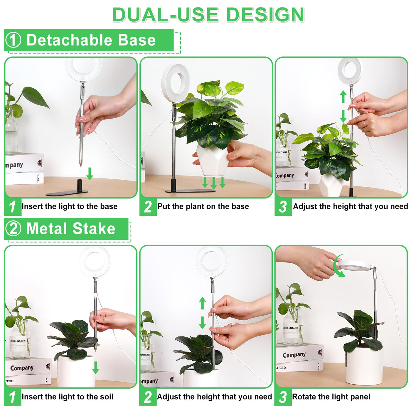 Our plant grow light's full spectrum 2×48 LED lights are the same as natural light and use less energy to give your plants the nutrition they need. It can be used with a base or plugged directly into the soil, which ensures stability and saves your desktop space. The automatic timer ensures your convenience and the adjustable brightness takes care of your plants at different stages of photosynthesis. Height adjustable can be raised along with your plant's growth. Provide better protection for your plants.
