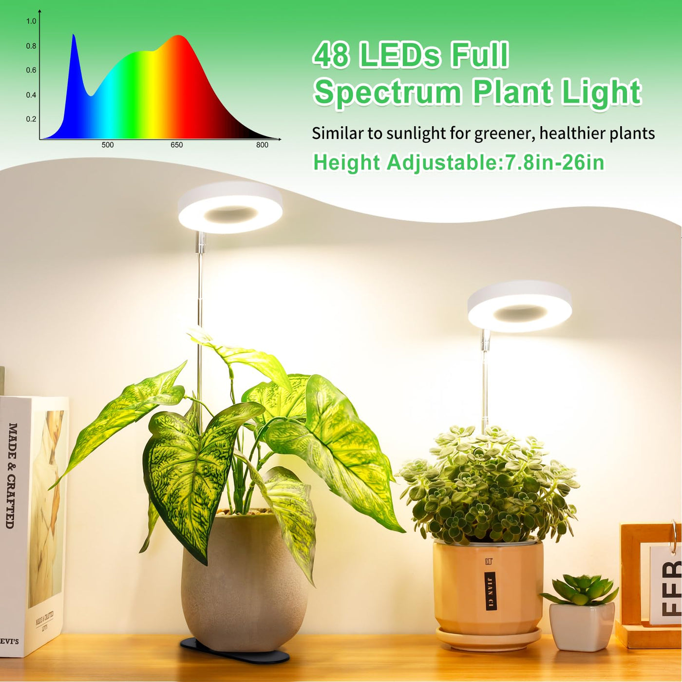 Saviler Plant Lights For Indoor Plants, Full Spectrum Growing Lamp For Indoor Plants, Desk Grow Light With Detachable Base, Height Adjustable 7.8"-26", 4/8/12H Timer & 4 Brightness Levels, 2 Pack