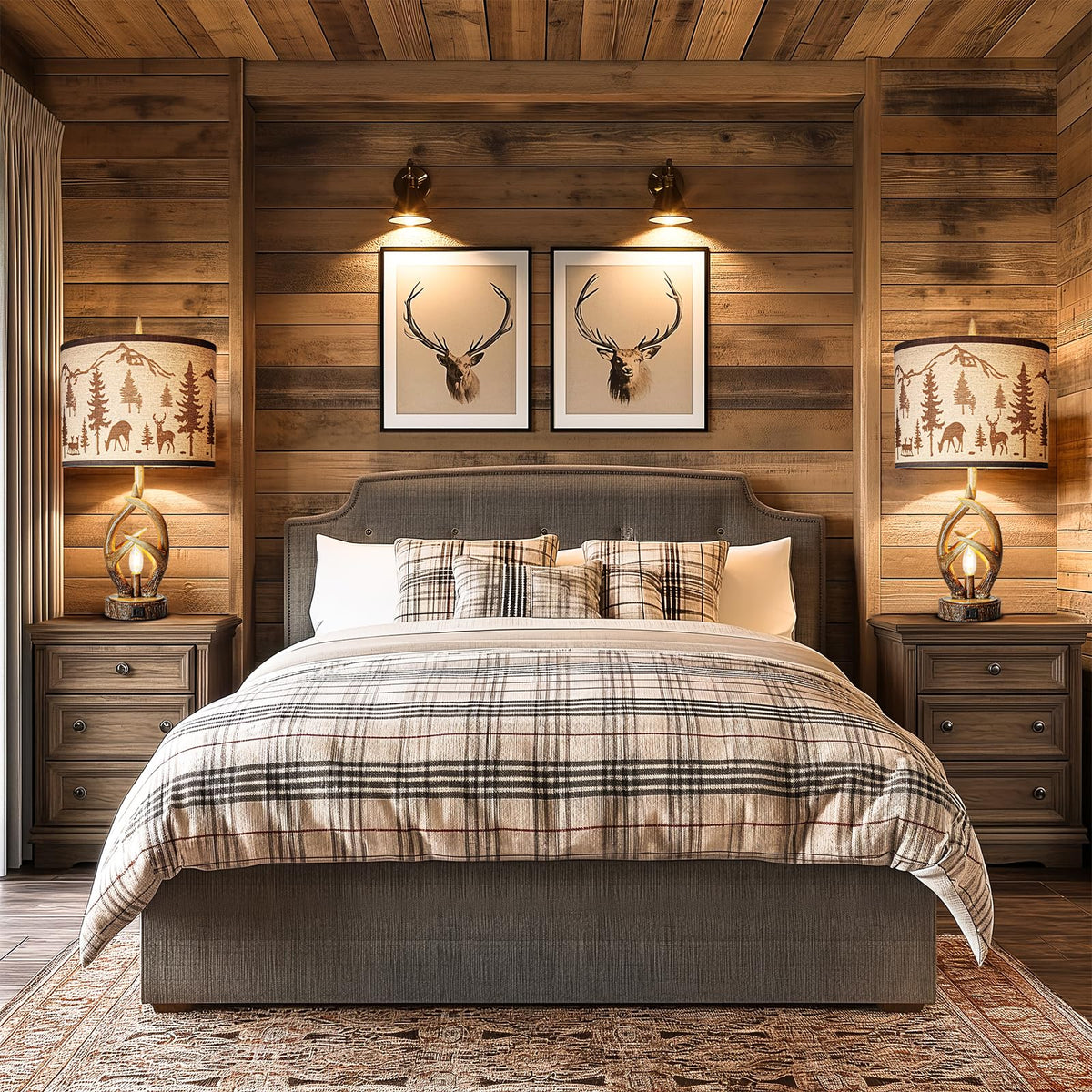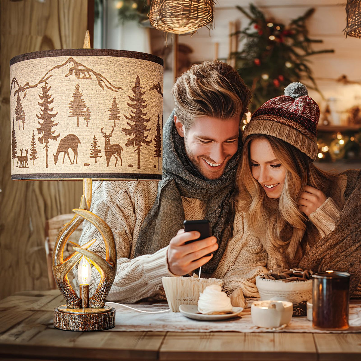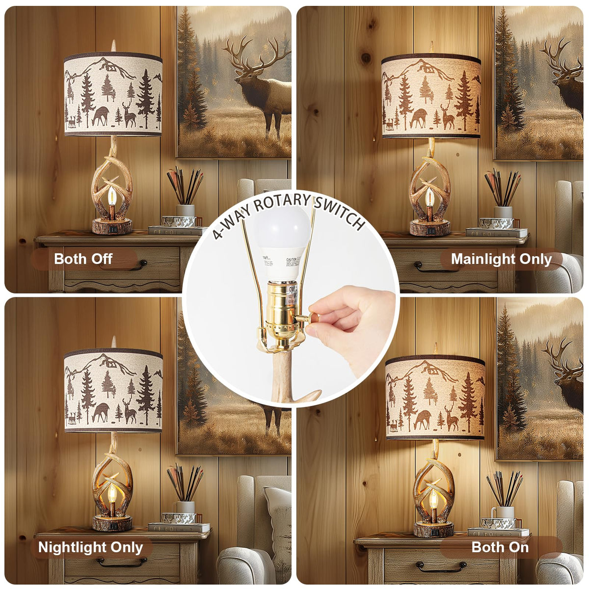 Featuring a rustic farmhouse design, this table lamp combines modern minimalism and functionality. The main body adopts antler elements to present a natural rustic forest style. The lampshade with a bar pattern made of linen fabric makes it even more elegant. Then, we introduce you to the specially designed 4-way switch to present you 4 ways to use it. The switch can turn on two lights independently or both at the same time. Night lights bring you warm light, making it an elegant decoration for your living room, bedroom or office.