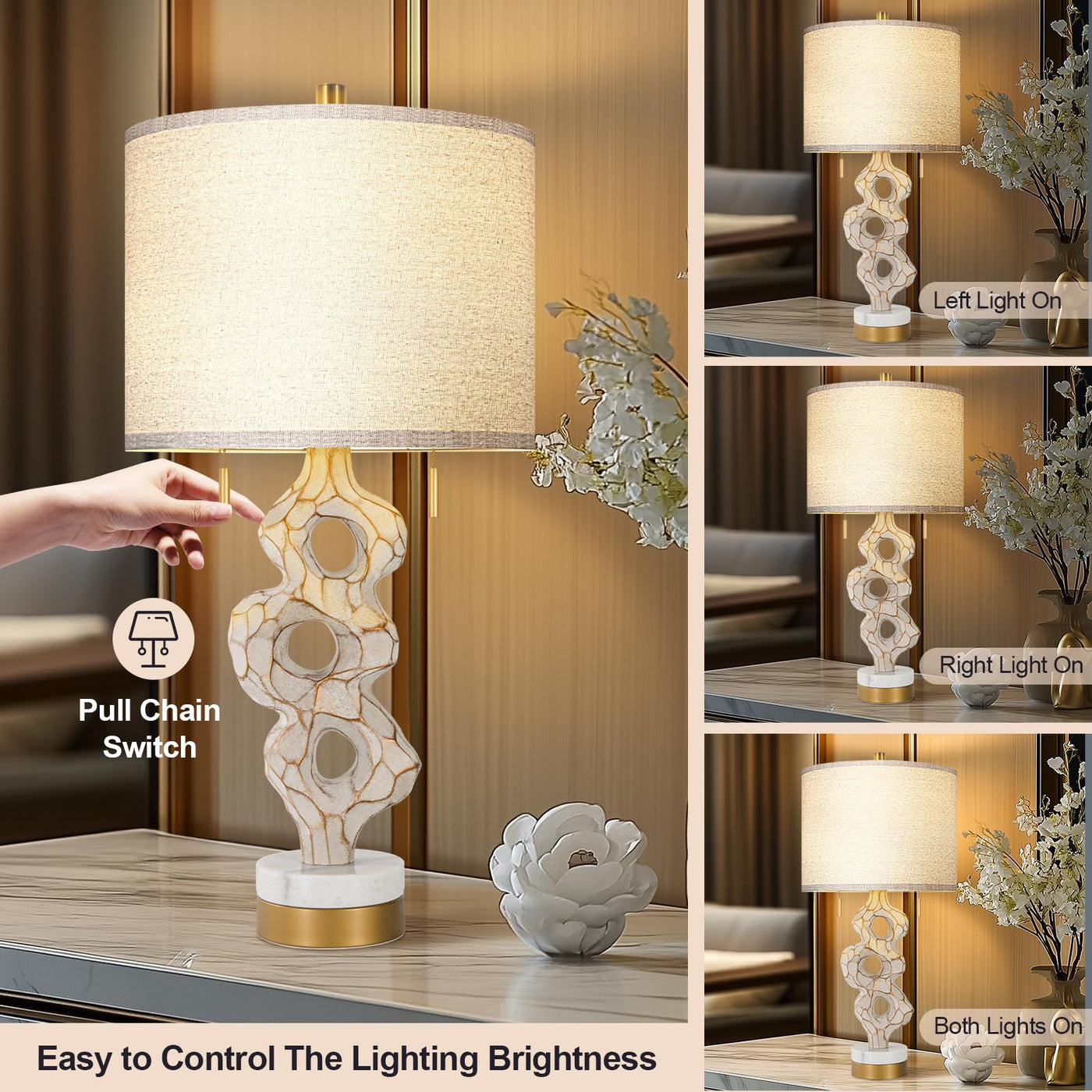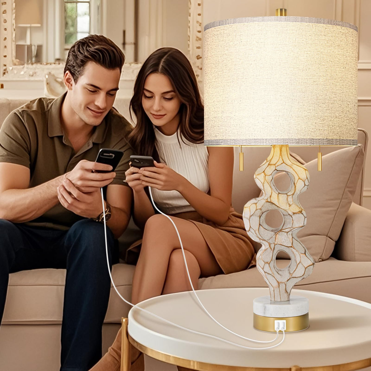 Unique Farmhouse Table Lamp Set Of 2 With Usb Port, Rustic Elegant Design, Natural Marble With Solid Metal Base, Really Enhances Functionality And Artist Aesthetically Pleasing In The Same Time. Sculptural Table Lamp Set Of 2 For Living Room, Bedroom Awesome Table Lamp Goes Great With Variety Of Decor For Living Room, Bedroom, Nursery, Office, Dorm And So On. Soft Ambiance Table Lamp, Adds A Touch Of Coziness To Your Home! Soft Ambiance Lighting, Separately Controal, Awesome Home Decor Just Screw And Snap On With A Few Steps, No Tools Needed, Assemble In Minutes, Super Easy. Built-In Usb Port, Stable Maintain 5V 2.1A Output, Ideal To Charge Your Phone, Laptop, Watch, Tablet And Other Electronic Devices When Plug In (No Matter Lights On Or Off) Best Choice For Gifts Bed Side Lamp, Adds A Delightful Touch Of Traditional Charm And Even Perfectly For House Warming Gift, Wedding Gift, Birthday Gift, Christmas Decoration, Halloween Decoration And So On.