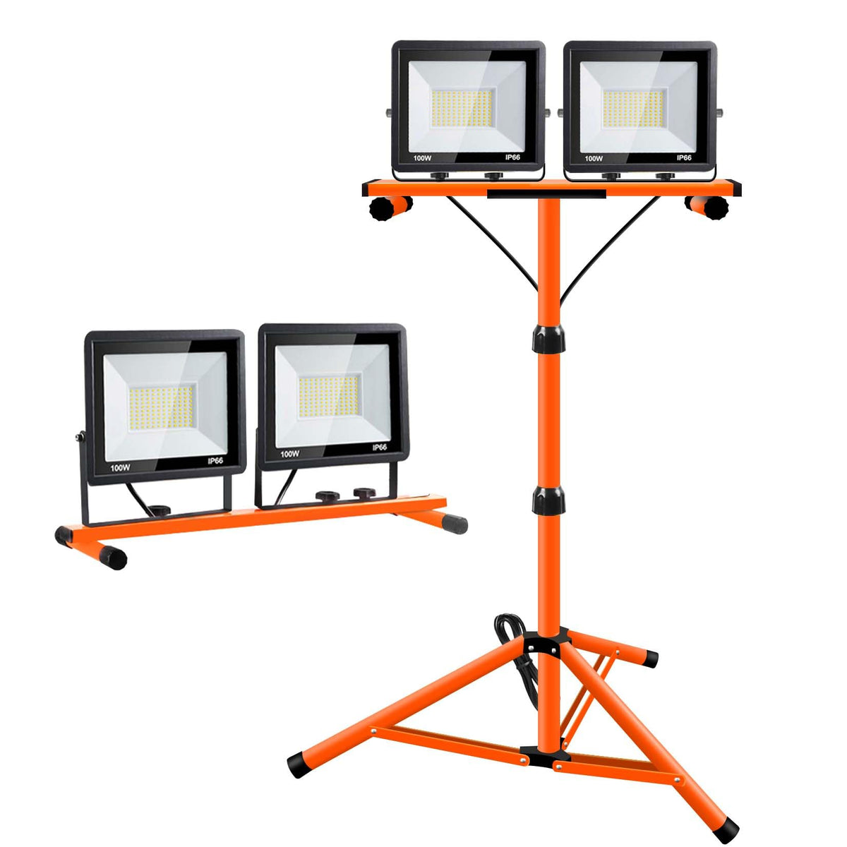 Scilulu 21000 Lumen Work Lights With Stand, 3 Adjustable Head Led Work Light, With Adjustable And Foldable Tripod Stand, Waterpr