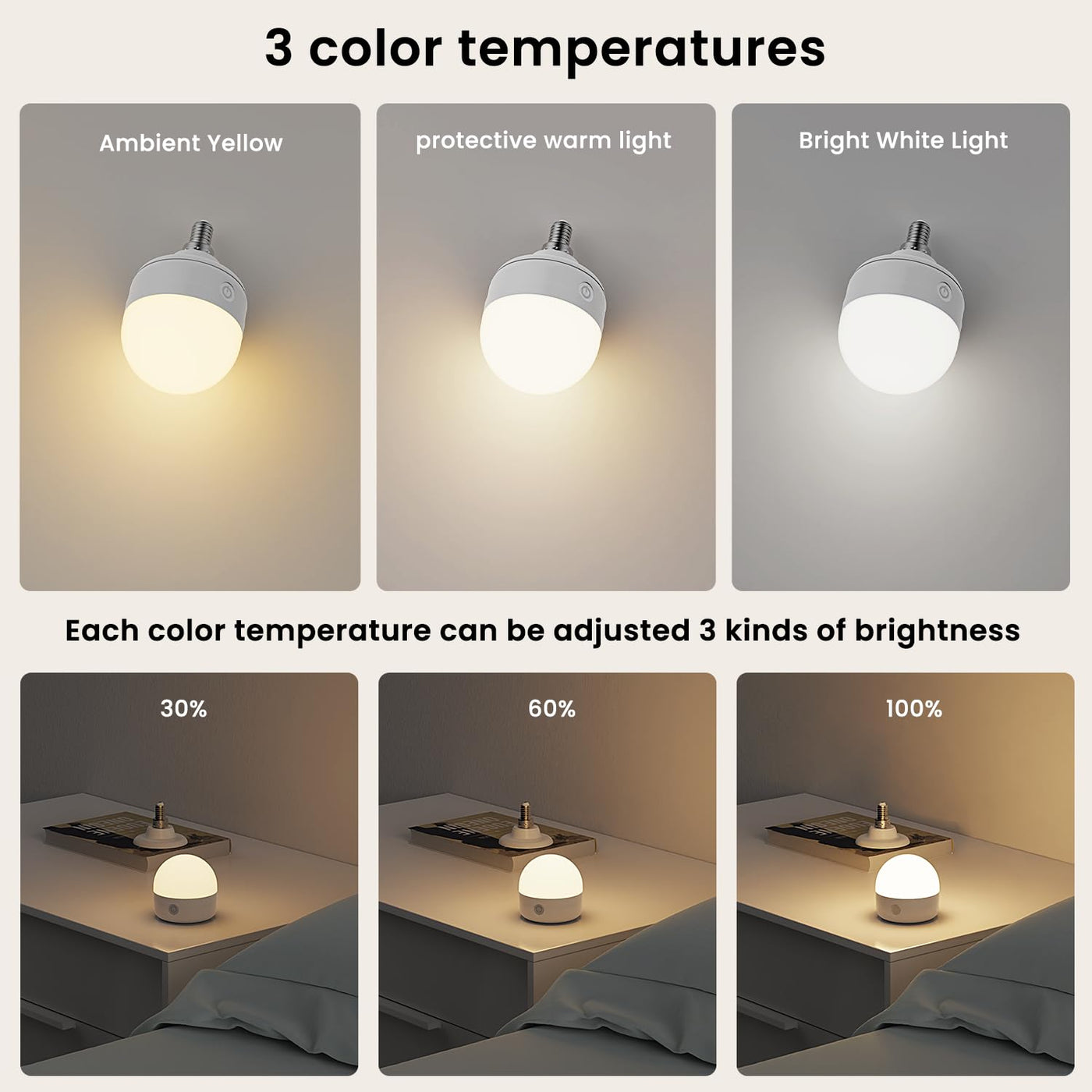 Scopow Brighter E26 Rechargeable Light Bulbs With Remote Control Timer And 3 Color Temperature 600Lm Magnetically Battery Operated Light Bulbs Dimmer For Non-Hardwired(8W+E26+3Colors+2Pc)