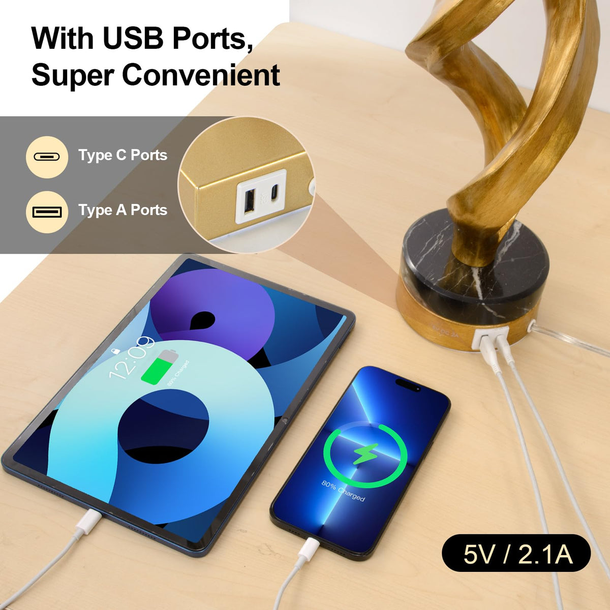 Unique Farmhouse Table Lamp Set Of 2 With Usb Port, Rustic Elegant Design, Natural Marble With Solid Metal Base, Really Enhances Functionality And Artist Aesthetically Pleasing In The Same Time. Sculptural Table Lamp Set Of 2 For Living Room, Bedroom Awesome Table Lamp Goes Great With Variety Of Decor For Living Room, Bedroom, Nursery, Office, Dorm And So On. Soft Ambiance Table Lamp, Adds A Touch Of Coziness To Your Home! Soft Ambiance Lighting, Separately Controal, Awesome Home Decor Just Screw And Snap On With A Few Steps, No Tools Needed, Assemble In Minutes, Super Easy. Built-In Usb Port, Stable Maintain 5V 2.1A Output, Ideal To Charge Your Phone, Laptop, Watch, Tablet And Other Electronic Devices When Plug In (No Matter Lights On Or Off) Best Choice For Gifts Bed Side Lamp, Adds A Delightful Touch Of Traditional Charm And Even Perfectly For House Warming Gift, Wedding Gift, Birthday Gift, Christmas Decoration, Halloween Decoration And So On.