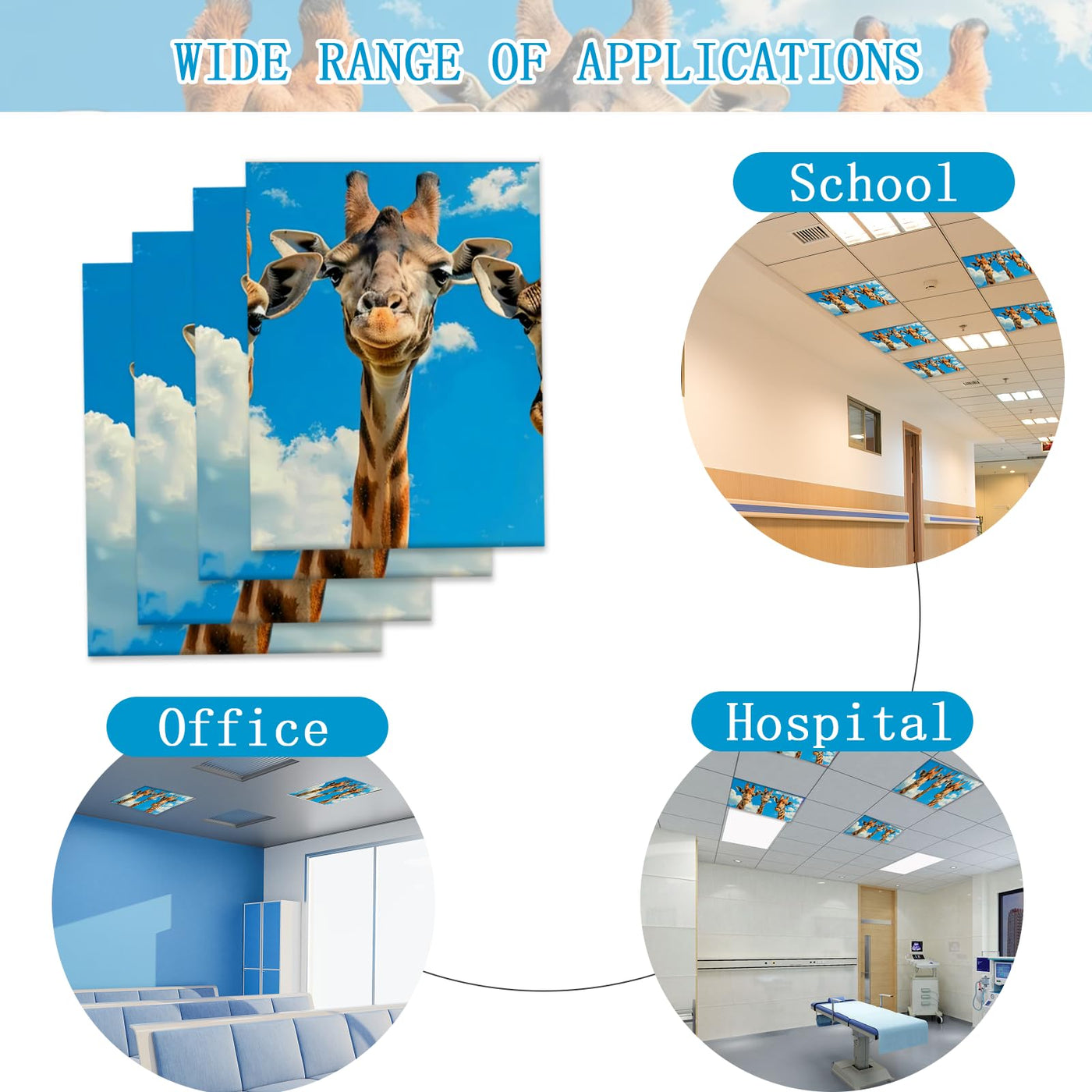 Q: What are the benefits of using these fluorescent light covers?A: These light covers reduce glare, helping to relieve eye strain caused by bright ceiling lights. They also enhance the ambiance of your space with calming sky and cloud patterns, making them ideal for classrooms, offices, and other environments where improved lighting is needed.