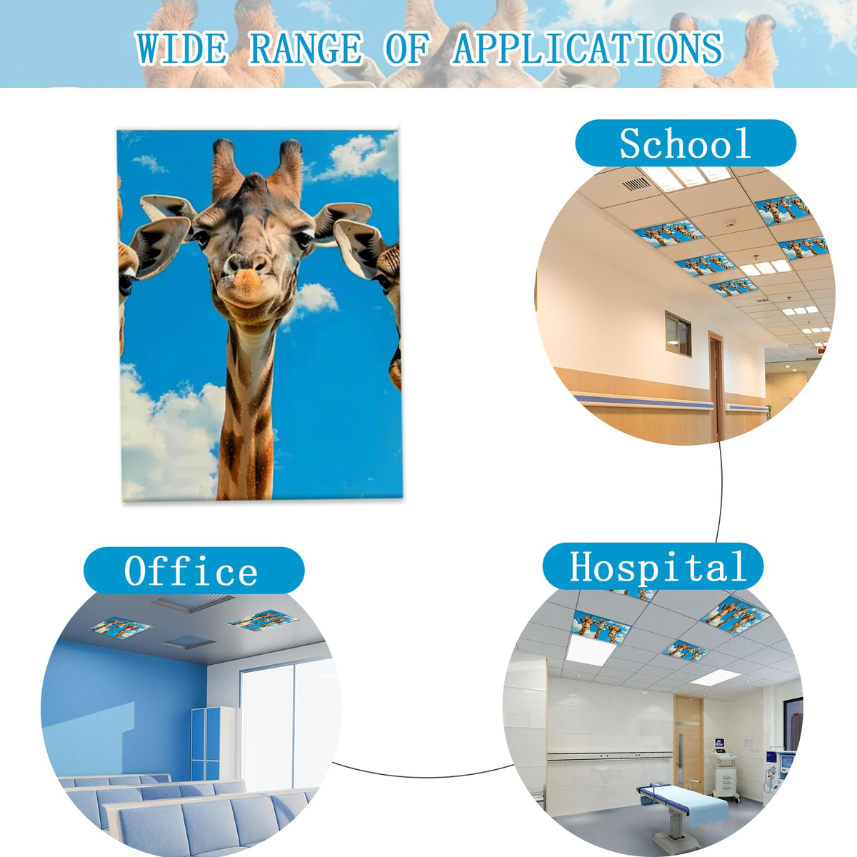 SCWISOAS Fluorescent Light Covers - Magnetic 2ft x 4ft Filters for Classroom, Home, Office - Three Giraffes Design