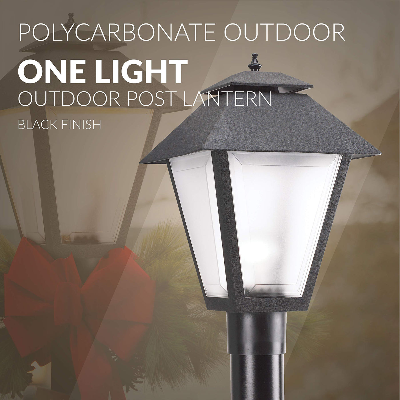 The Sea Gull Lighting Polycarbonate Outdoor one light outdoor post top in black enhances the beauty of your property, makes your home safer and more secure, and increases the number of pleasurable hours you spend outdoors. These outdoor lighting fixtures by Sea Gull Lighting are crafted from durable polycarbonate for enhanced weather resistance. Their clear beveled acrylic diffusers provide generous illumination that allows the incandescent light source to shine without diffusion.Style: Mediterranean,Transitional