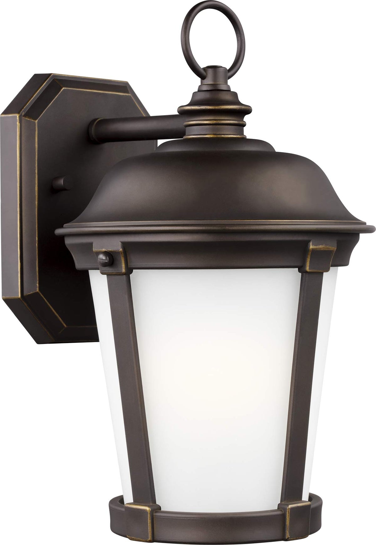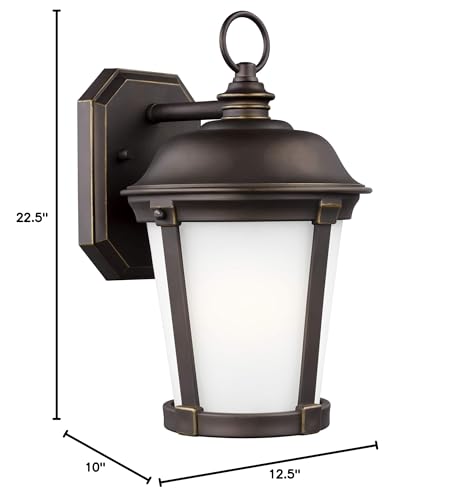Q: What is the size of the Sea Gull Lighting Outdoor Wall Lantern?A: The Sea Gull Lighting Generation 8650701EN3-71 is categorized as a Medium One-Light fixture, with dimensions of 9.12 inches in length and 7.88 inches in width.