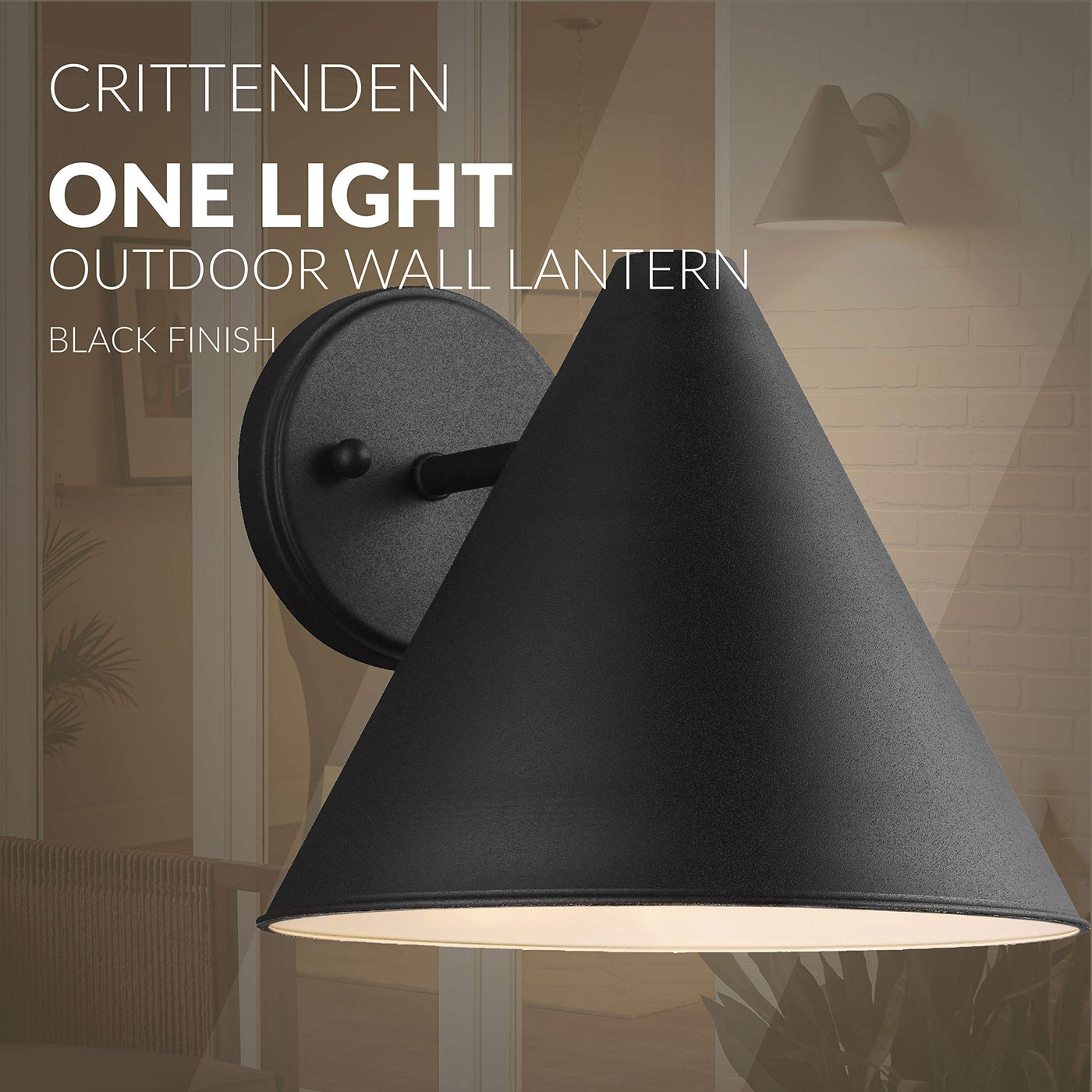 Q: What is the color and finish of the Crittenden One Outdoor Wall Lantern?A: The Crittenden One Outdoor Wall Lantern is available in an elegant Black Finish, which adds a stylish touch to any outdoor space.