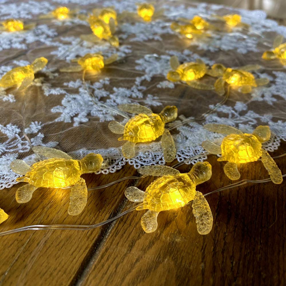 Q: What materials are the Sea Turtle Fairy Lights made from?A: These lights are crafted from high-quality 0.45mm copper wire, which provides durability and longevity. The intricate sea turtle designs add a touch of elegance, making them not only functional but also a beautiful decorative piece.