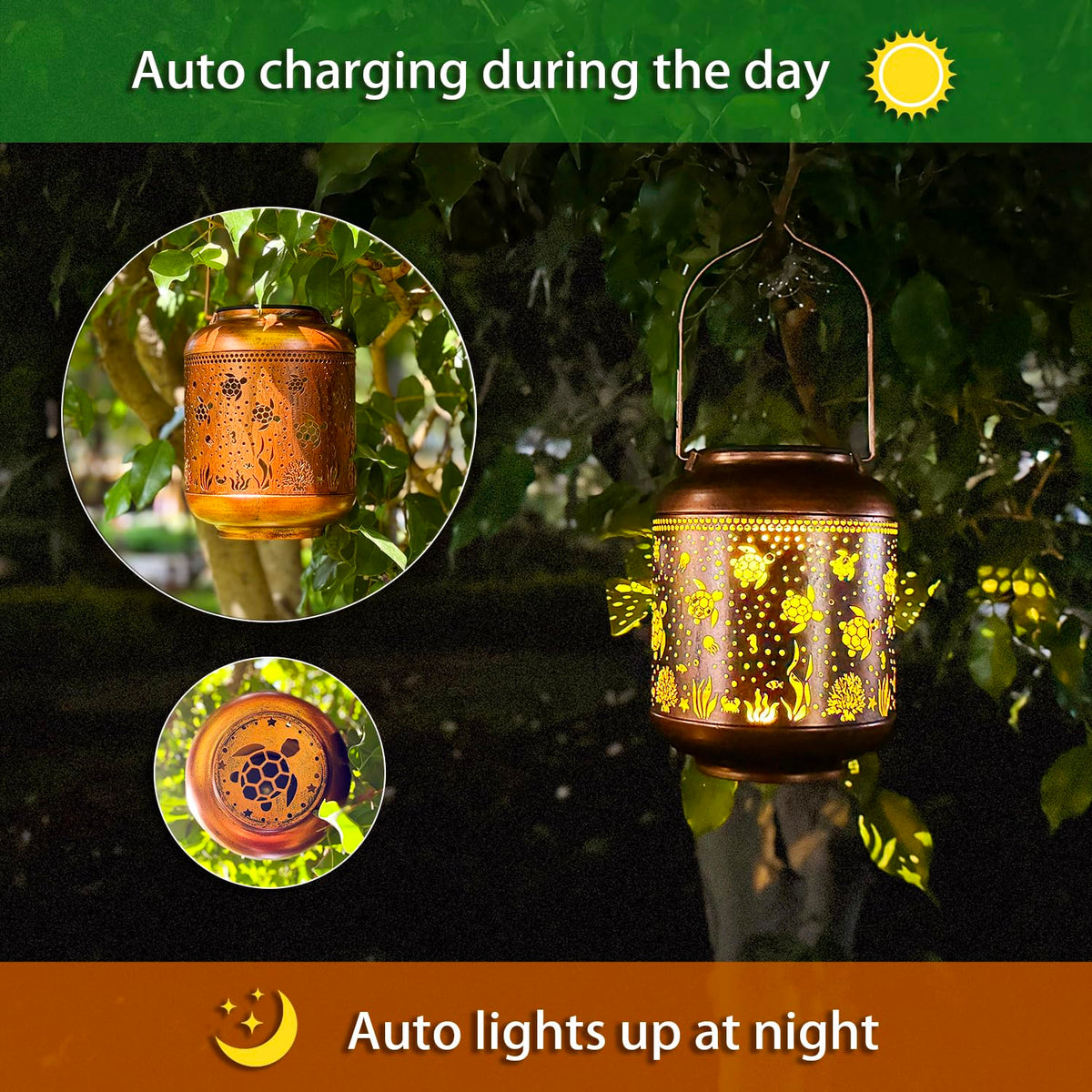 Sea Turtle Solar Lanterns Outdoor Waterproof,Hanging Solar Lights Sea Turtle Gifts For Women Metal Led Decorative Light For Yard