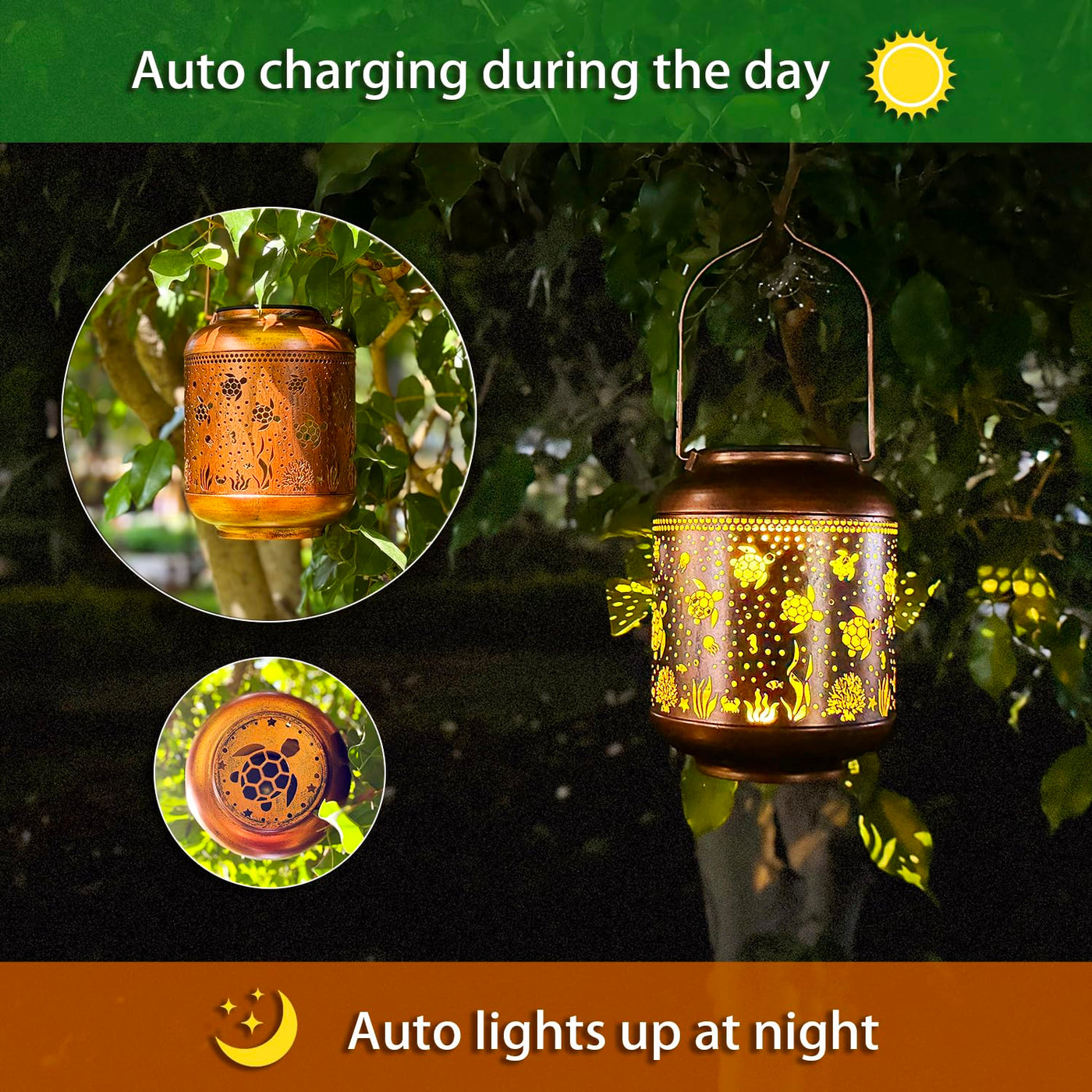 Q: Is the Sea Turtle solar lantern durable and weather-resistant?A: Yes, the Sea Turtle lantern is made from high-quality durable metal and has an IP65 waterproof rating, ensuring it can withstand rain, snow, and other harsh weather conditions without damage.