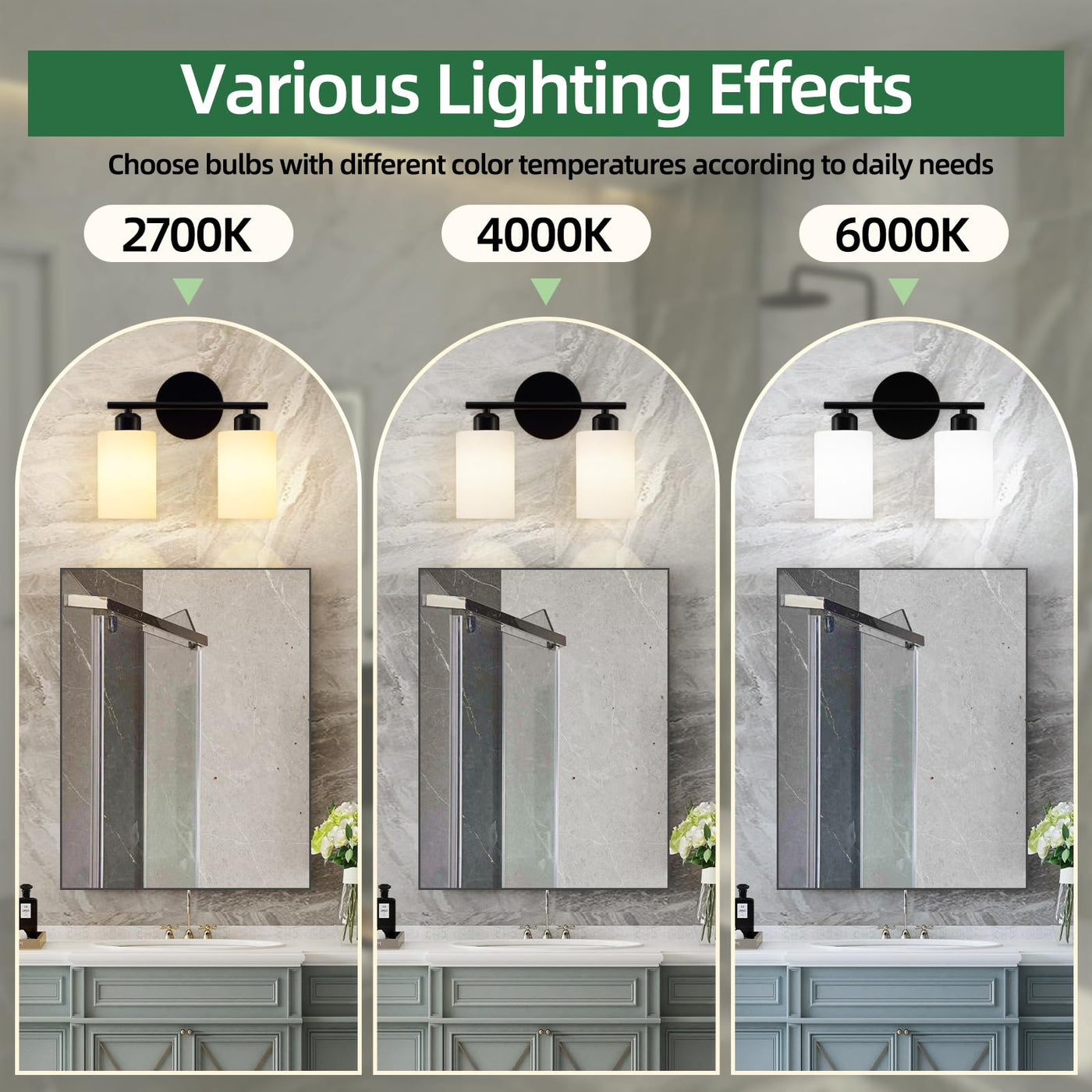 Seable 2-Light Bathroom Light Fixtures, Black Modern Vanity Lights With Milky White Frosted Glass Shades, Wall Sconce Light For