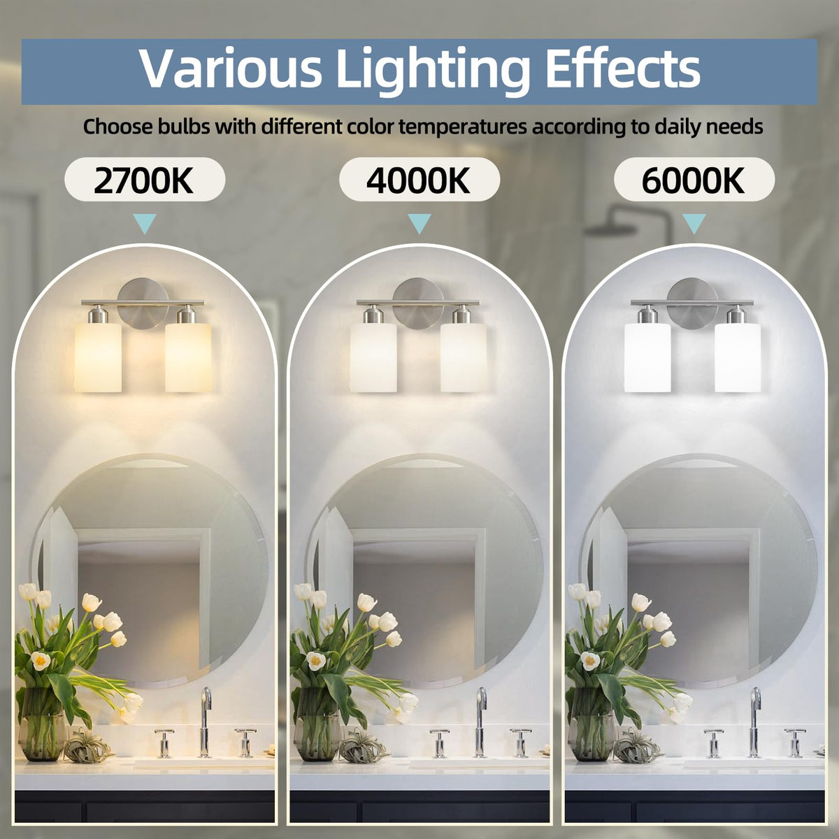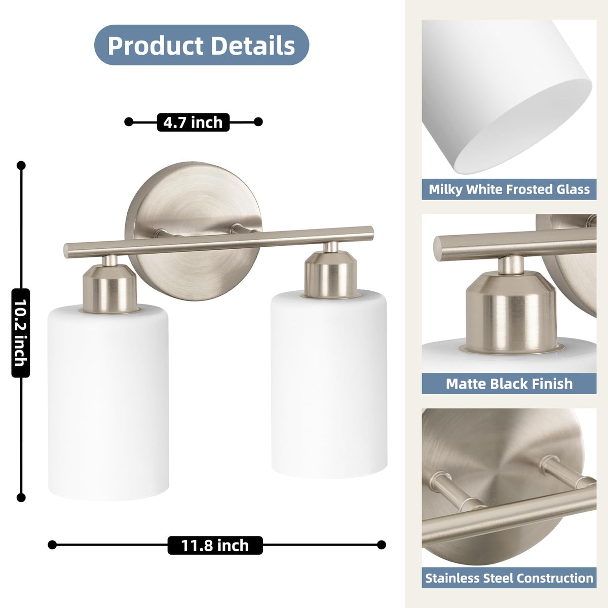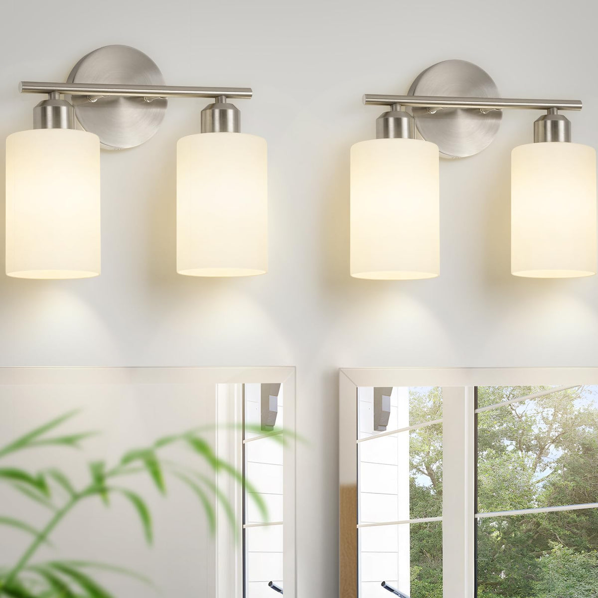 Seable Brushed Nickel Wall Sconces Set Of Two, 2-Light Modern Bathroom Light Fixtures, Wall Lamp With Milky White Frosted Glass
