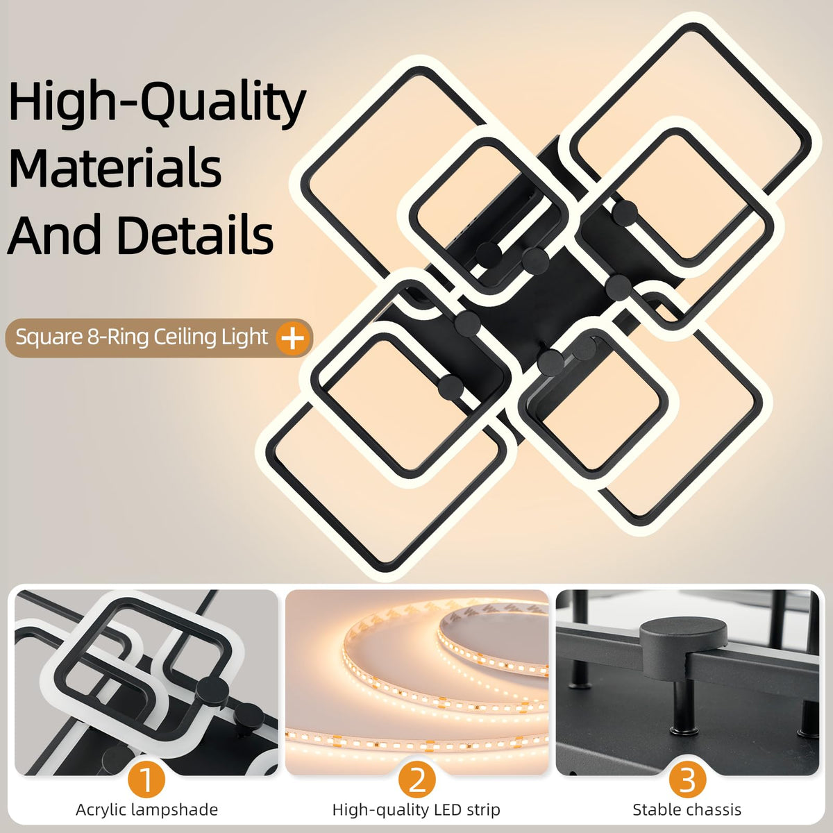 Seable Dimmable Modern Led Ceiling Light 8-Square Black Flush Mount Led Ceiling Light With Remote For Living Room Bedroom Close