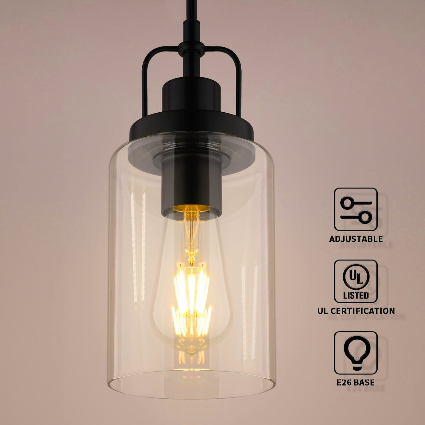 Seable Pendant Light Kitchen Island Black, Modern Pendant Light Fixture Clear Glass Cylinder Hanging Light For Kitchen Decor Din