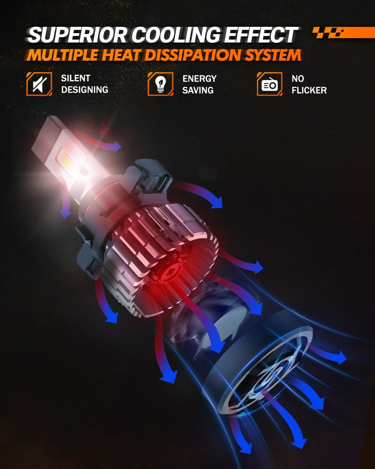 SEALIGHT 5202 LED Fog Light Bulbs Or DRL, 5201 PS19W PS24W Fog Lights LED Light for Car, 20000RPM Turbo Fan Strong Penetration,6