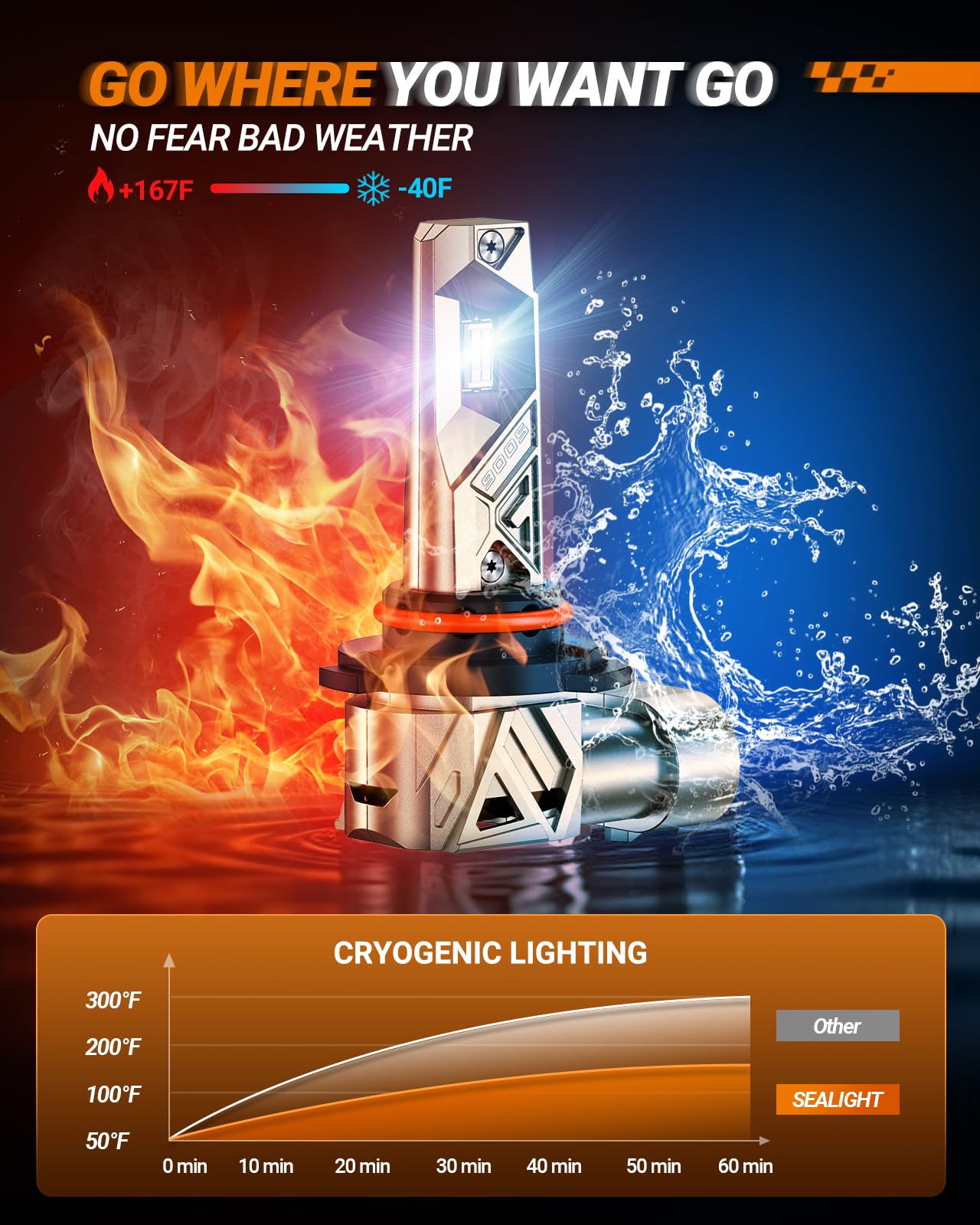 Sealight 9005 9006 ?????? Bulbs Combo 96000Lm 1000% Bright S6 Pro 9005 9006 Bulb With 64 Lighting Chips 80 000Hrs+ Lifespan Combo Cornering & Side Marker Light Assemblies Plug And Play Pack Of 4