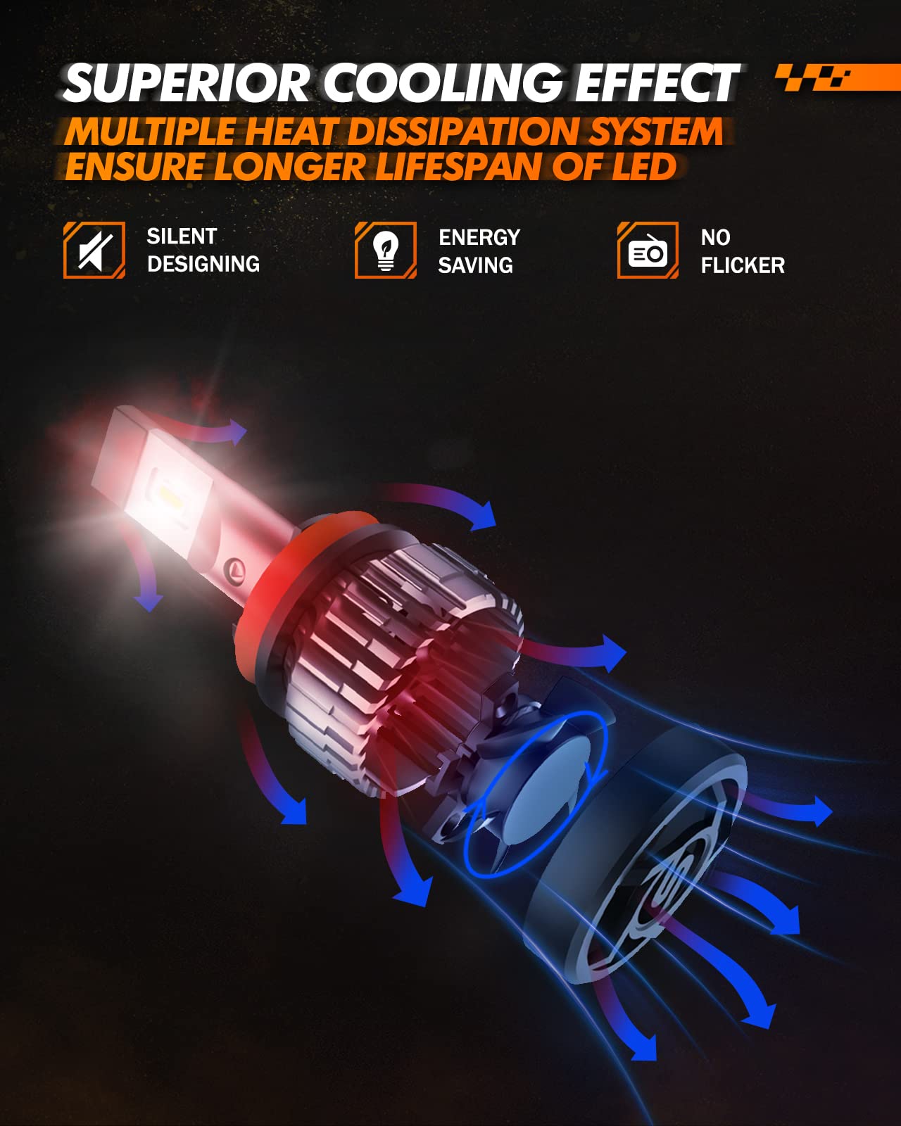 Q: What makes the cooling system of these LED bulbs unique?A: These LED bulbs feature a unique 20000RPM high-speed silent turbo fan that offers super cooling effects, ensuring excellent heat dissipation. This design helps to maintain higher brightness levels and extends the lifespan of the bulbs beyond 50,000 hours.