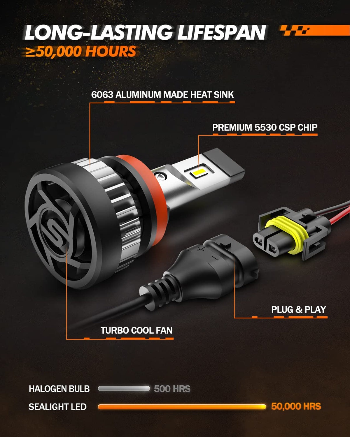SEALIGHT XF2 Series LED Fog Light brings you 4-8 times brighter than ordinary halogen bulbs. Our 6000 Lumens 6500K cool white LED bulbs have a wider, stronger beam. With clearer vision than the original halogen lamps, your night driving is easier and safer