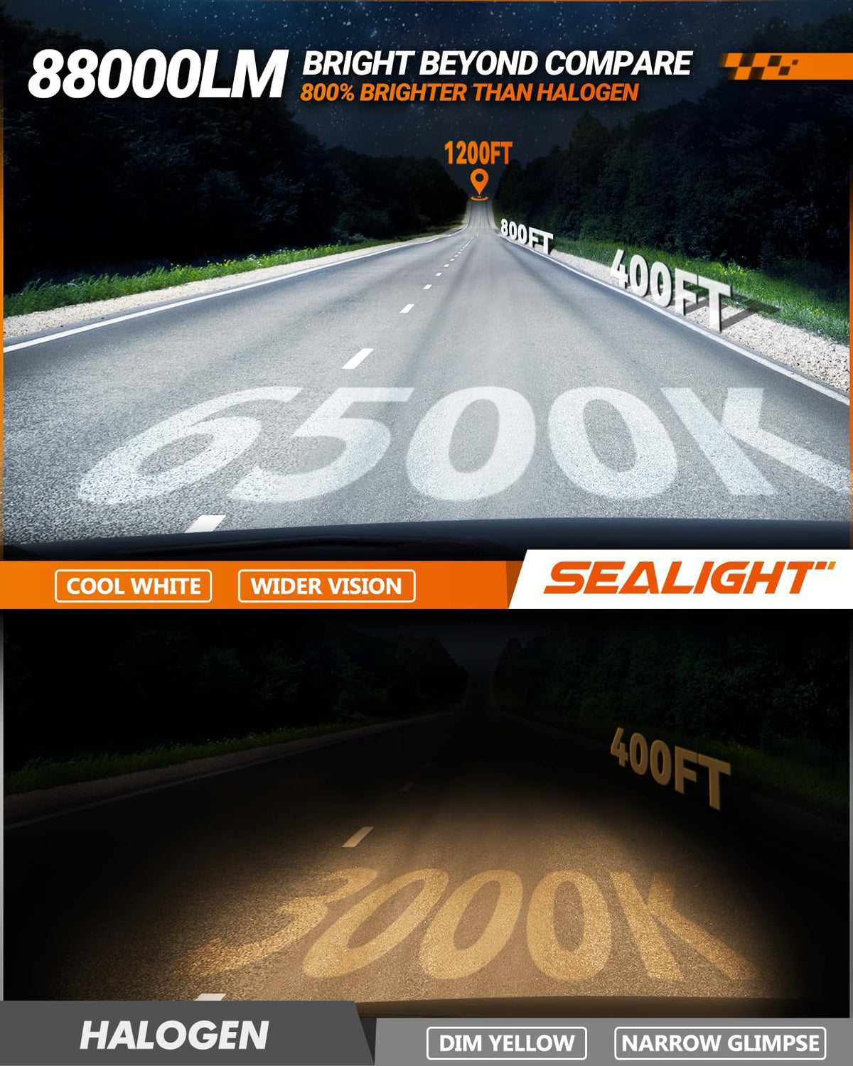 Experience unparalleled visibility and safety during nighttime driving with the SEALIGHT 9005/HB3 H11/H9/H8 combo fog lights. Engineered with advanced technology, these fog lights deliver an astounding 88,000 lumens of super brightness, ensuring that every journey is illuminated with clarity. The 6500K cool white light enhances your driving experience, allowing you to navigate roads effectively, whether in fog, rain, or darkness.