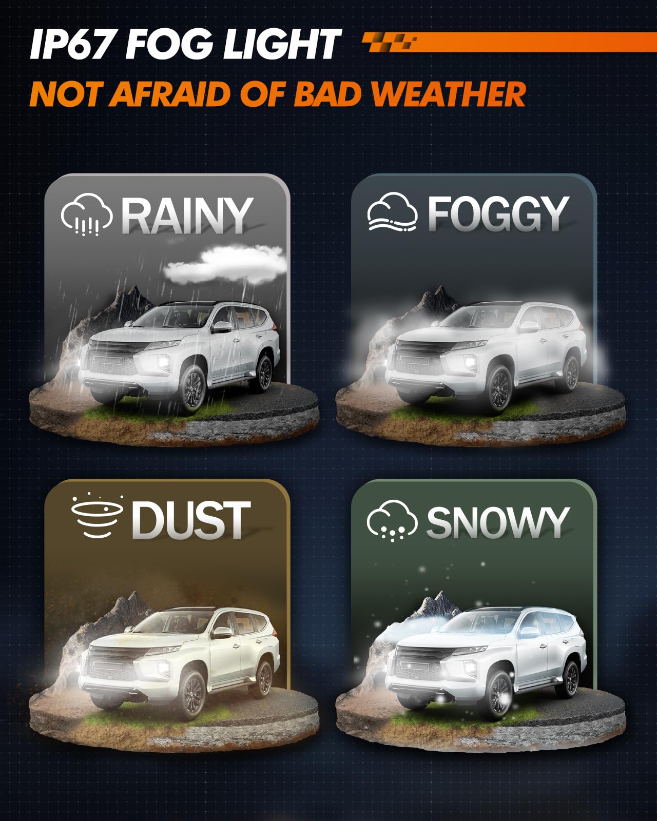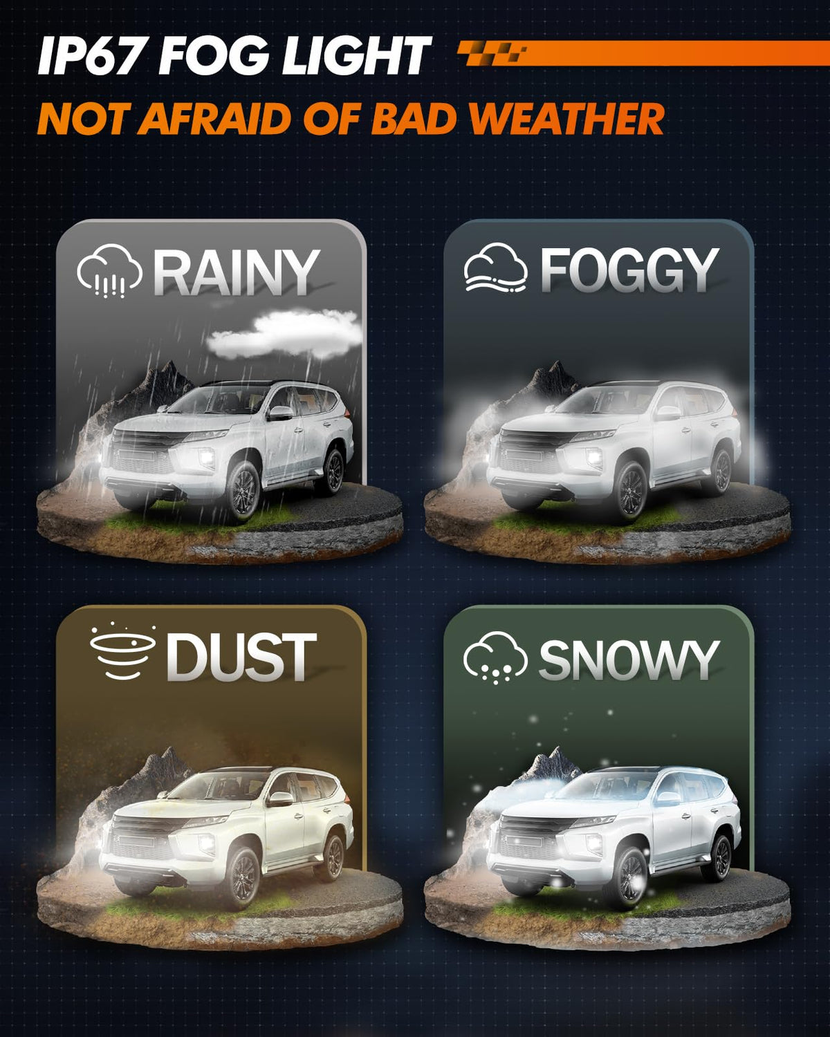 Better Visibility: SEALIGHT H4 fog light bulbs are equipped with eye-protection xenon white, 1:1 design, so you can see further in more react time | Plug and Play: With non-polarity socket and plug and play design, you can finish installation in minutes without modification or wiring while replacing the stock bulbs | Over 50,000 Hours Lifespan: H4 fog bulbs has been rigorously tested for durability. With its high-performance chipset and heat sink design, it has reached a perfect balance of performance and service life | Compact Fanless Design: The latest non-integrated fanless design is compact and silent, utilizes an advanced heat sink measuring just 1.16 inches, and features a driver for increased performance | CANBus Ready: SEALIGHT H4 fog bulbs built-in intelligent CSP chips, compatible with 99% of vehicles