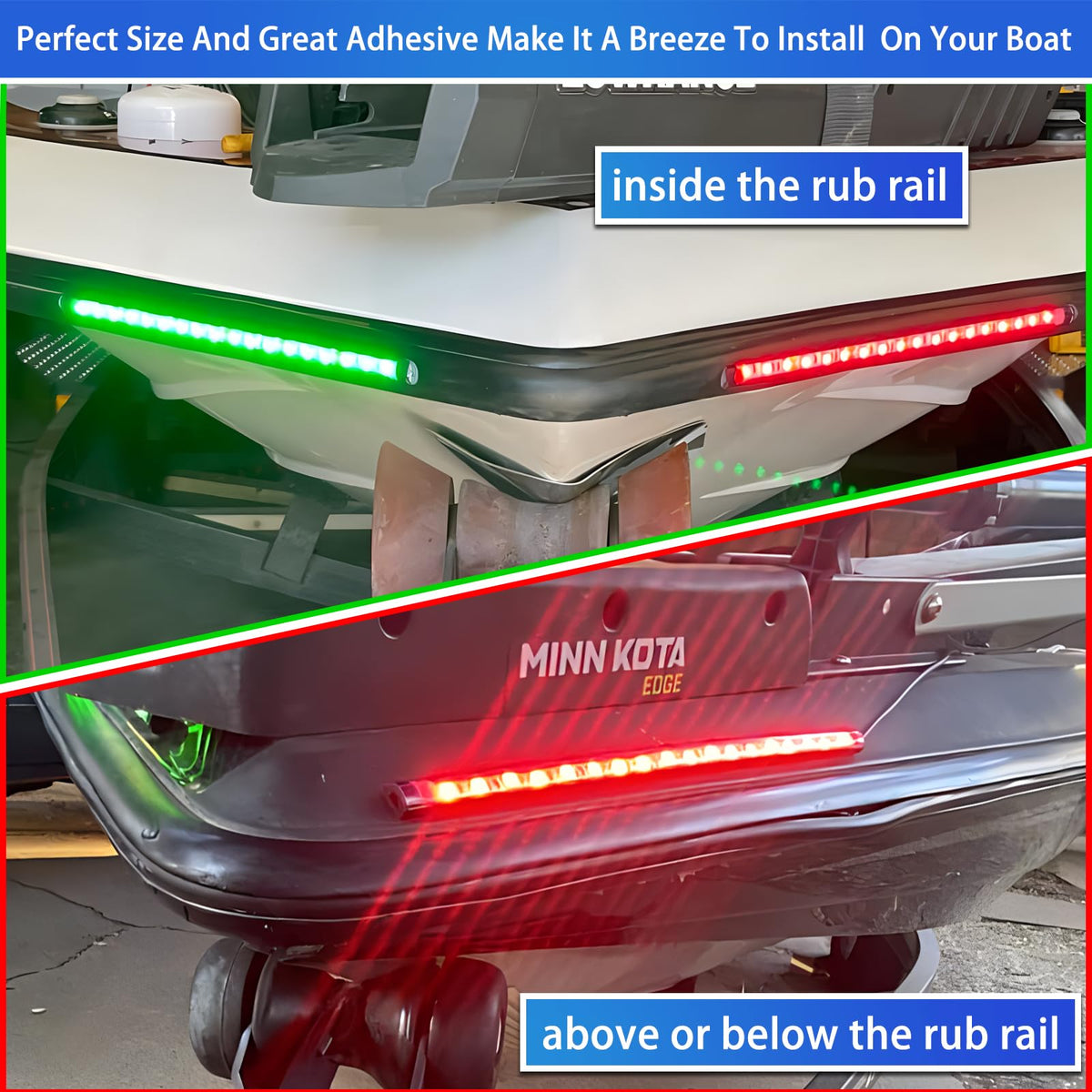 The Seaperk Marine Strip Lights are essential navigation lights designed for boating and kayaking enthusiasts. This product enhances visibility on the water, ensuring safe travel during day and night. With a package that includes two high-performance strip lights?ne red and one green?hese lights are perfect for marking the bow of your boat.
